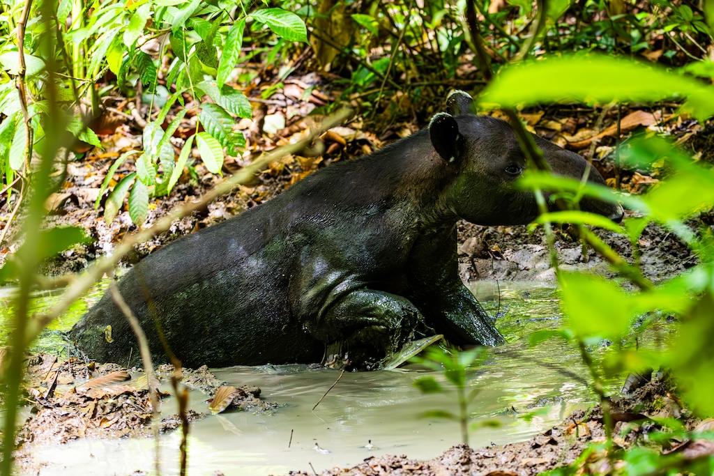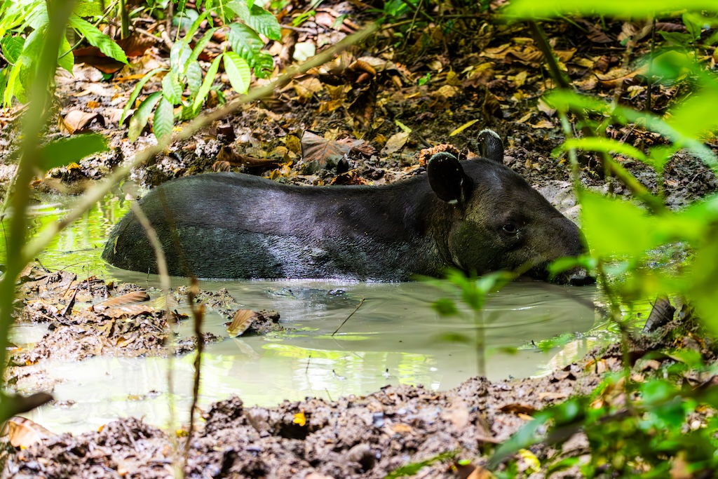 We kwamen ook langs een Tapir die lag te baden in de modder. Ik was de laatste van onze groep die mocht kijken en toevallig stond hij net op en begon te lopen!