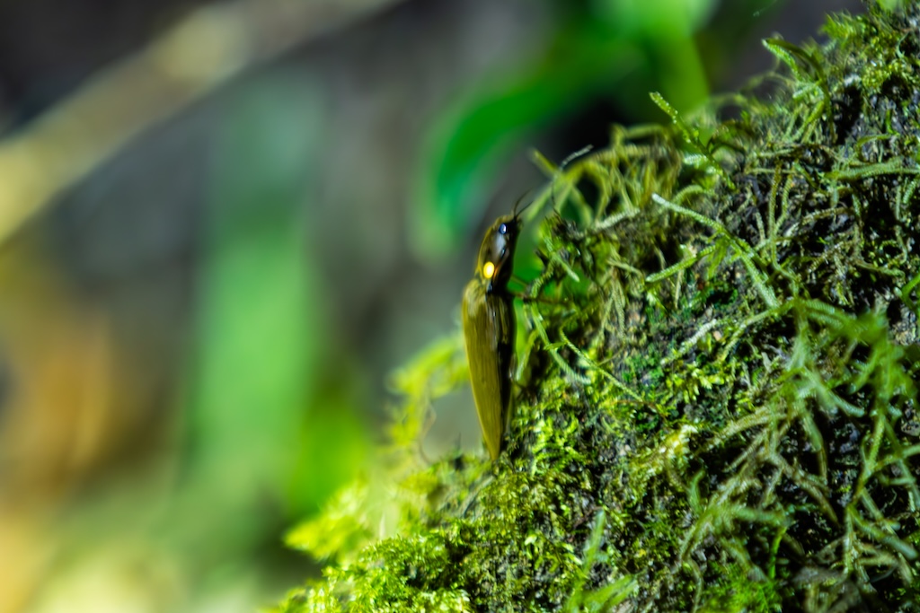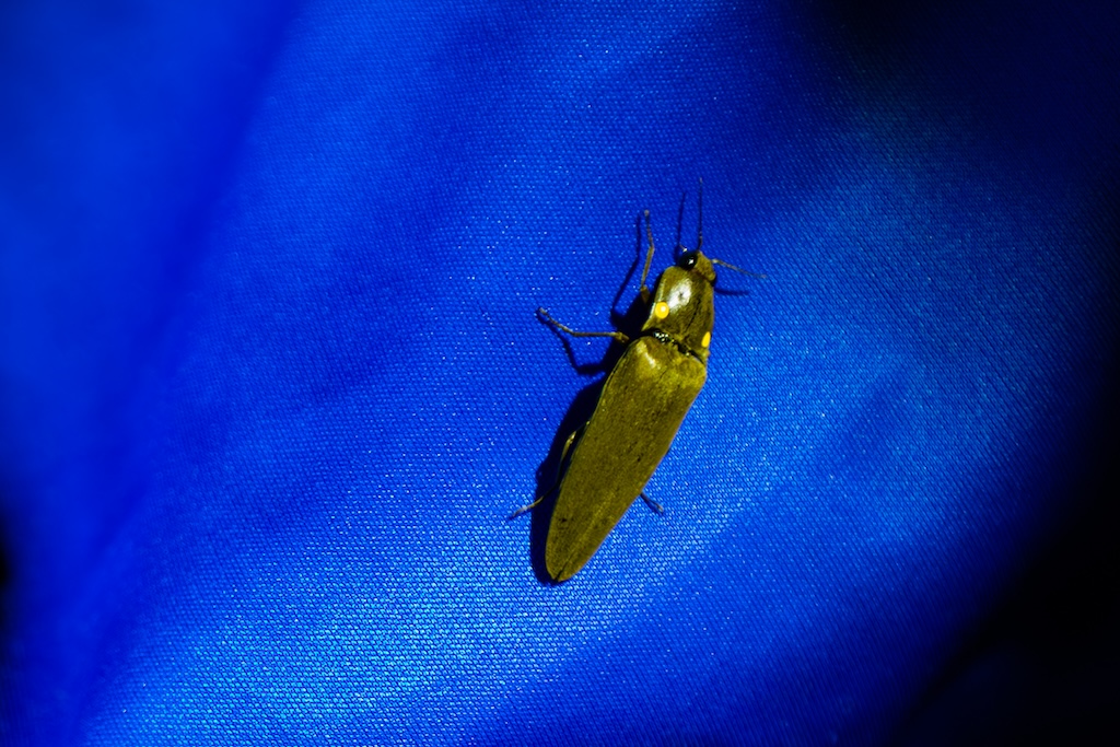 Ook zagen wij de Pyrophorus, een soort vuurvliegje uit de familie van de lampyridae. Het heeft twee gele lichtjes aan de zijkanten van zijn lichaam om een aantal redenen, die voornamelijk te maken hebben met communicatie, verdediging en aantrekking van partners.