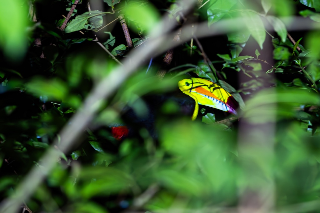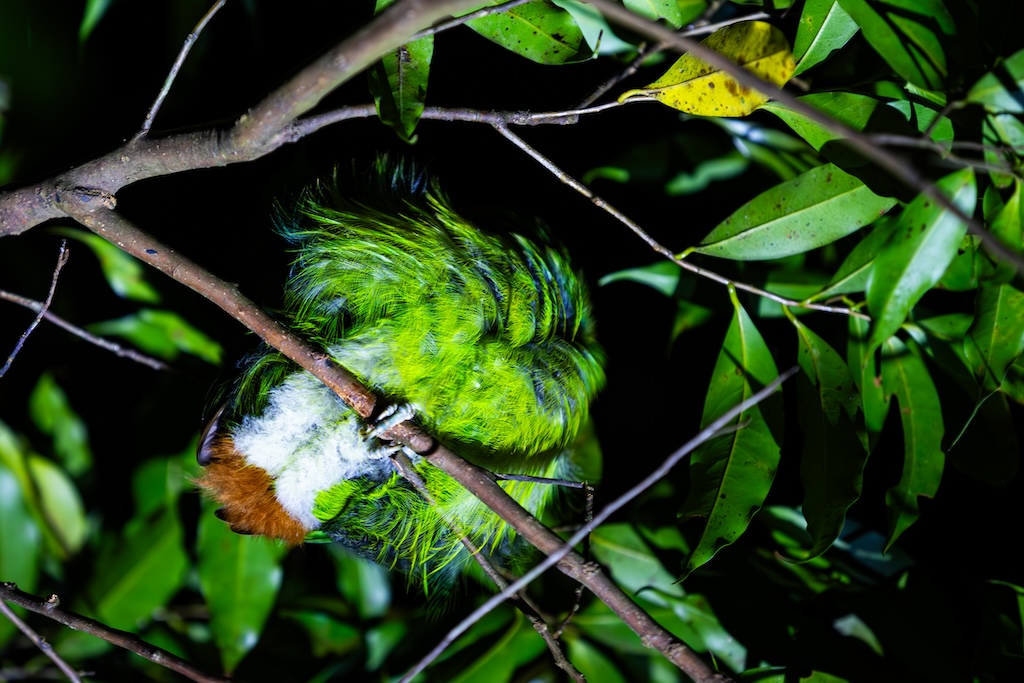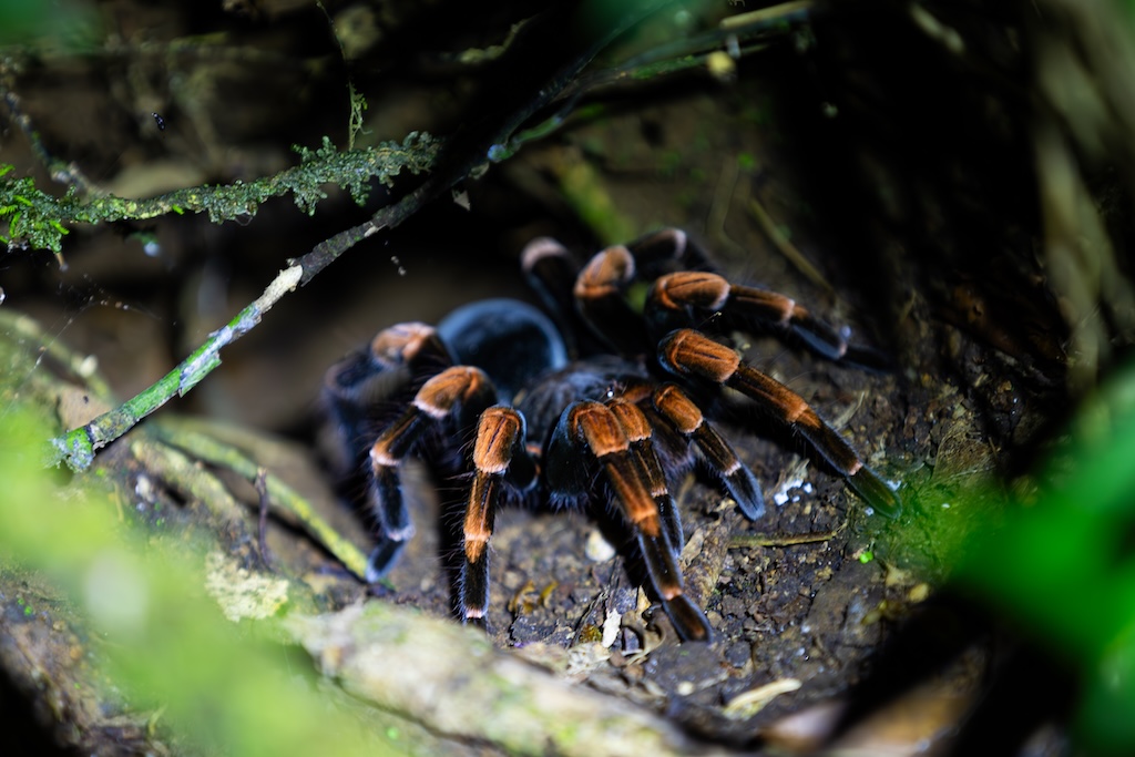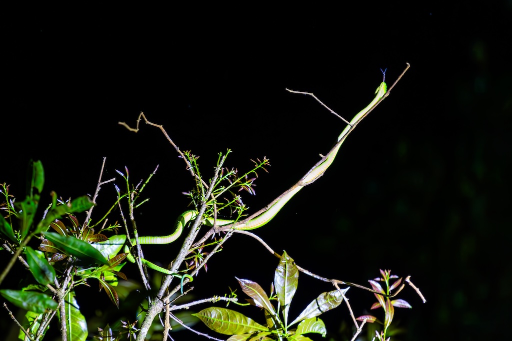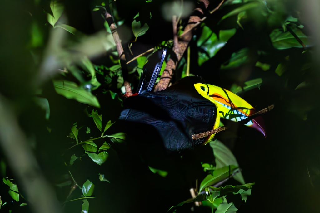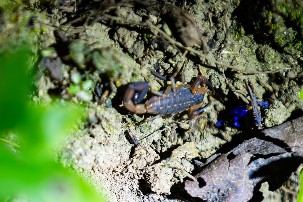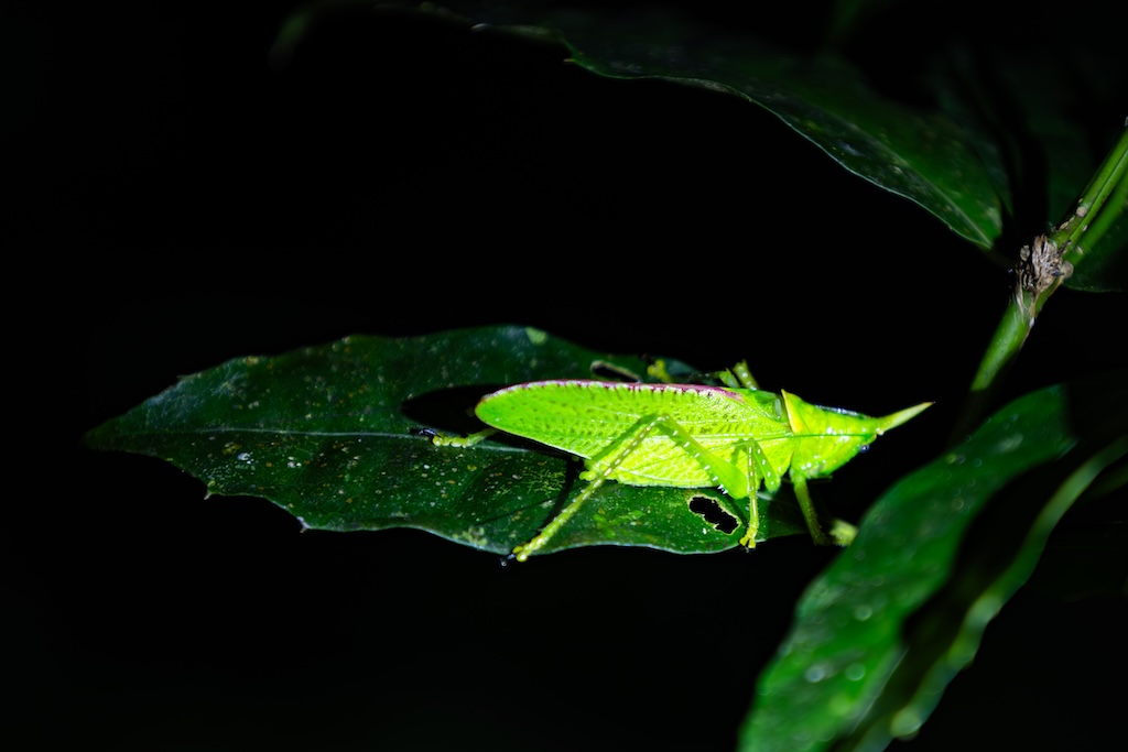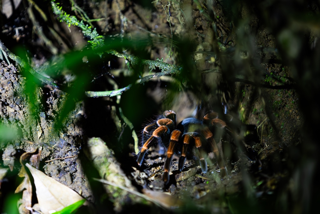 Een toekan en helaas een slapende smaragdarassari (een soort klein toekantje), een groene slang (Bothriechis lateralis), een lichtgevende schorpioen, een Knulliana-kever, mega grote sprinkhanen en een tarantula.