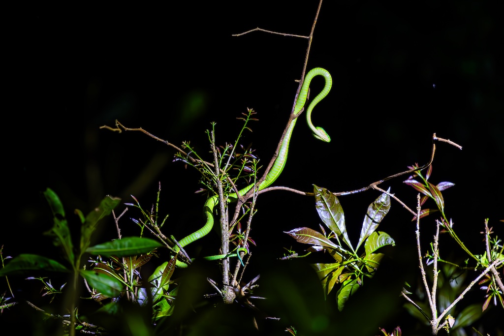 Na een lange busreis kwamen we aan in het stadje Monteverde. Om even de beentjes te strekken, koos ik voor een avondwandeling met gids door een bos in Monteverde. Zonder verwachting liet ik alles op me afkomen. Het leek een soort spookwandeling van vroeger, zoals op schoolkamp. Kun jij je dat gevoel nog herinneren?