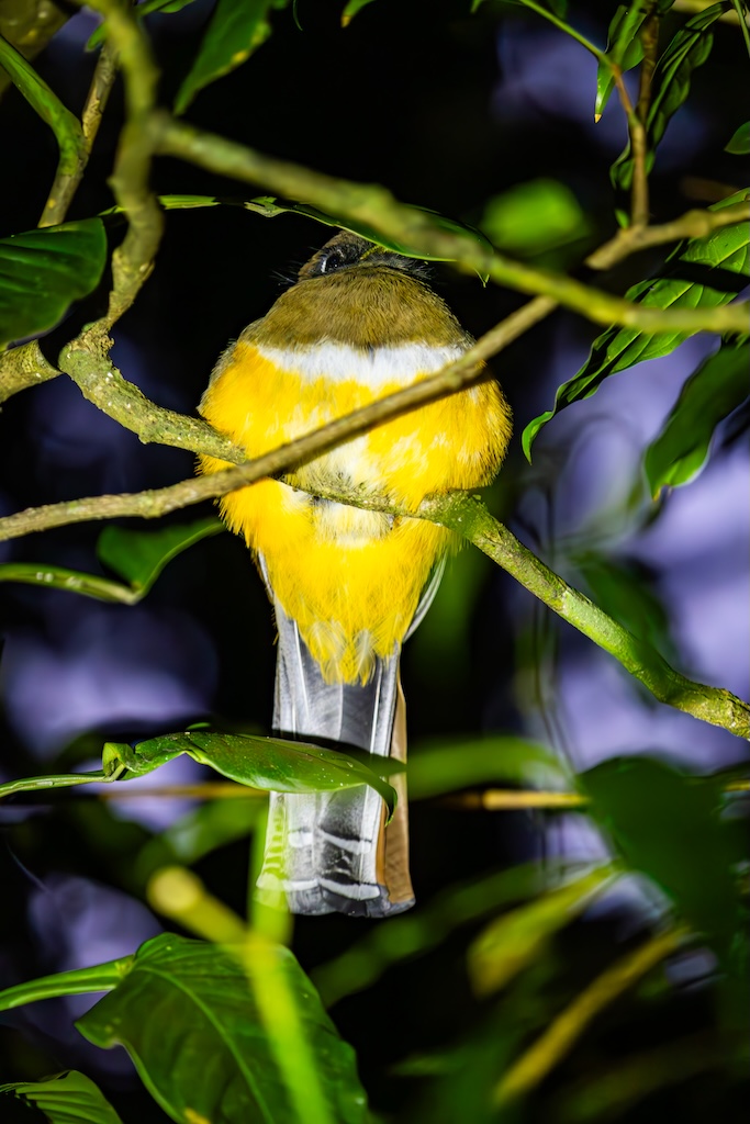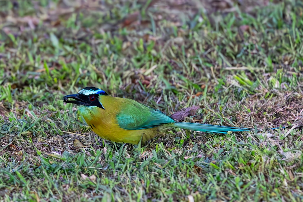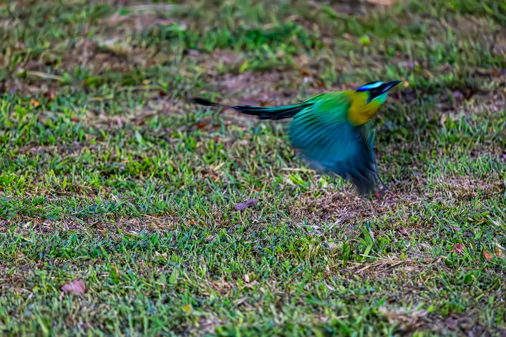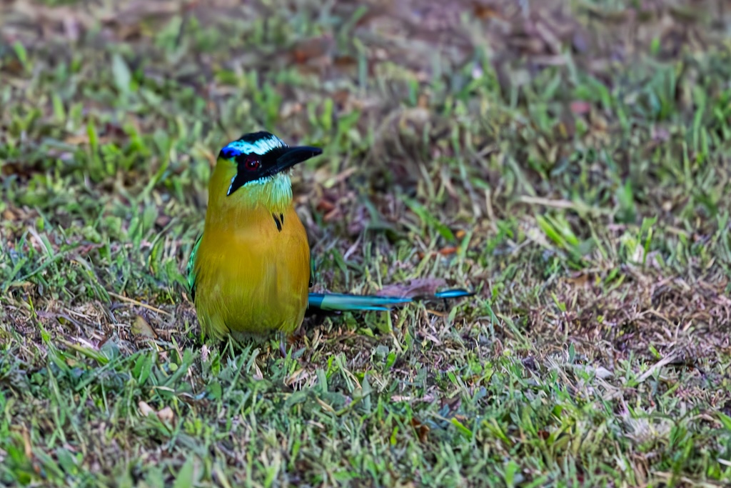 Net nadat wij vertrokken met onze gids, zag ik een vogeltje. Na inzoomen zag ik dat het de prachtige Lessons motmot was! Het was al bijna donker, dus met een ongekend hoge ISO heb ik toch nog een foto kunnen maken. De rest van de tour was het volledig donker en moesten wij vertrouwen op het zwakke zaklampje van de gids.