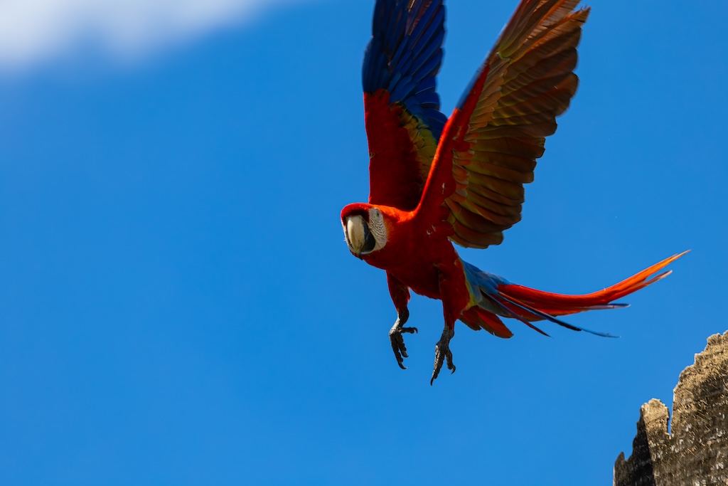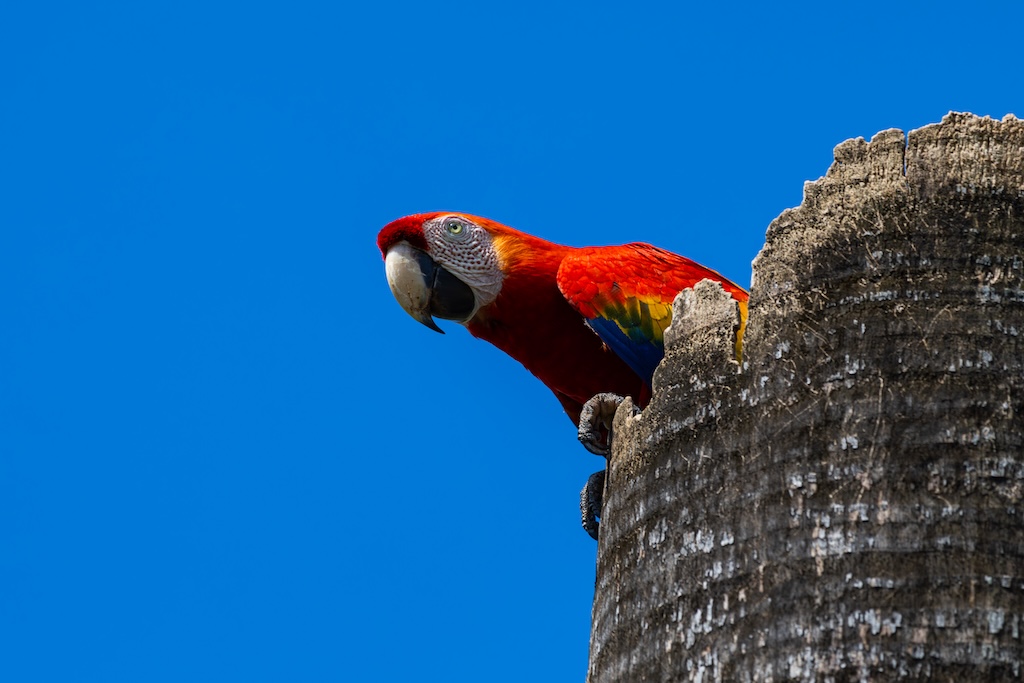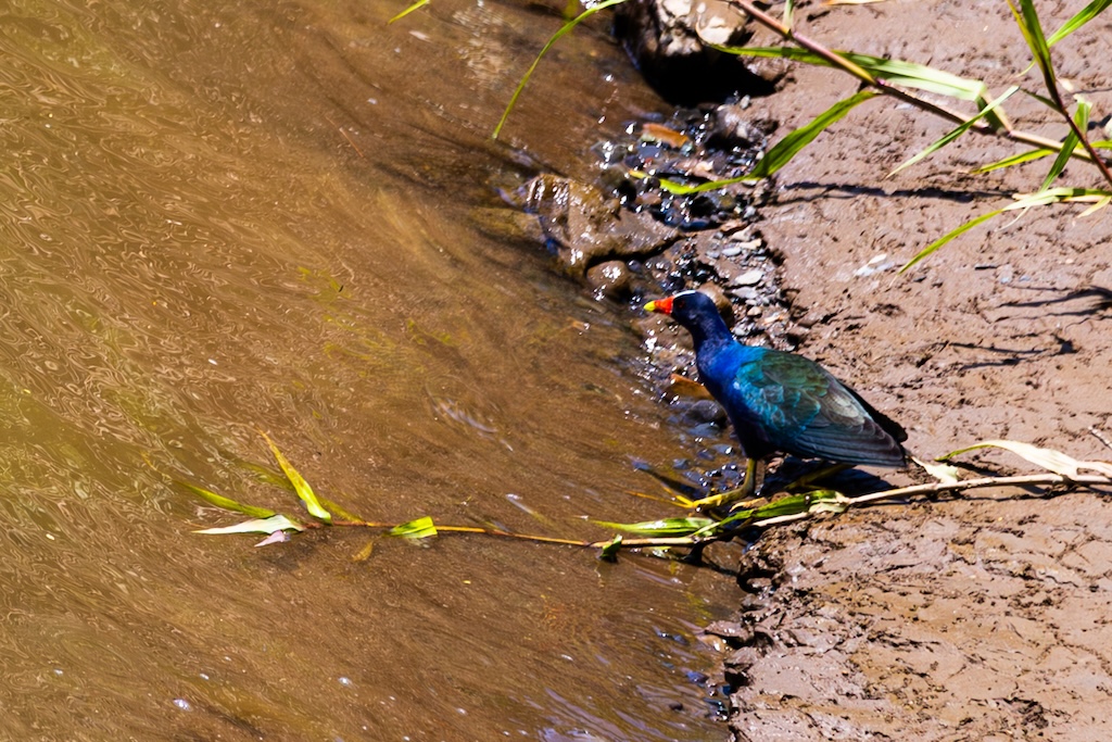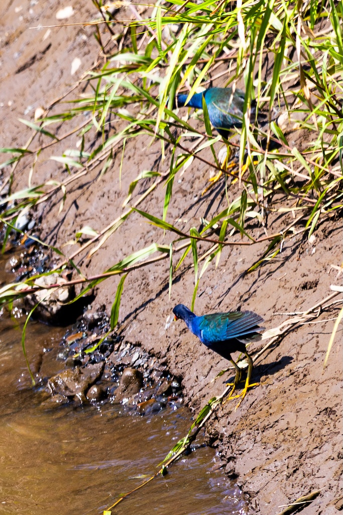 We zagen een Macaw (rode Ara) in een boomrestant zitten. Prachtig om van zo dichtbij te zien. Ook het paartje Amerikaanse purperhoenders zat weer braaf onder de brug, net zoals tijdens de eerste keer.
