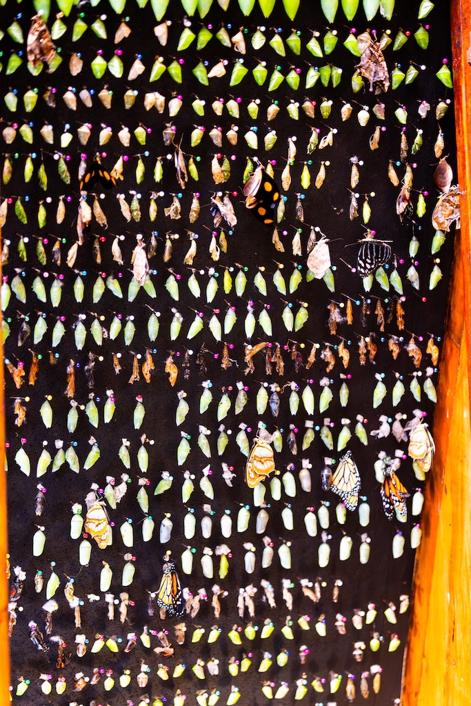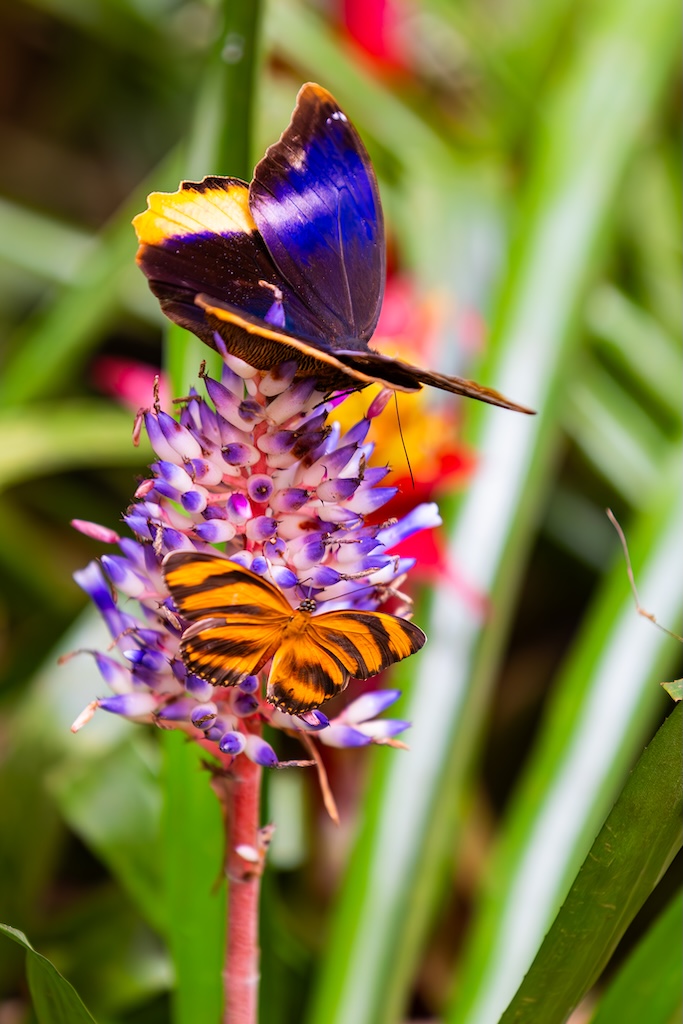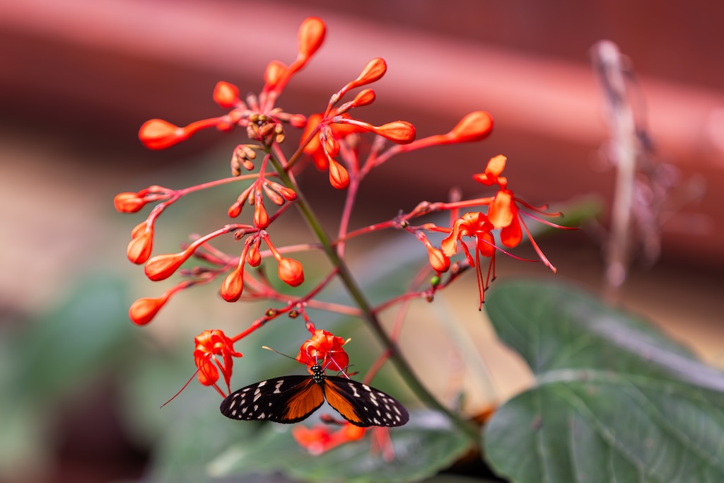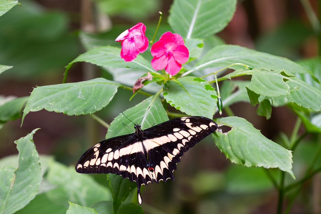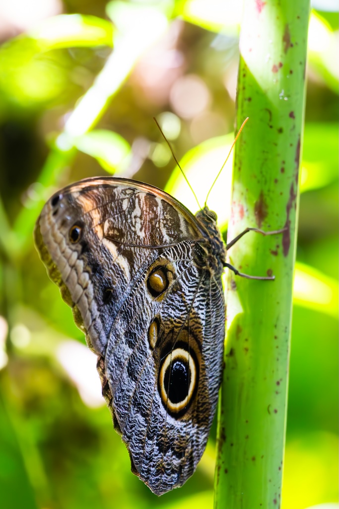 De gids zei dat de vlindertuin ook een echte aanrader was, dat vond iedereen erg leuk de vorige keer. Nou… het was gewoon een dichte koepel, zoals in de dierentuin waar vlinders gekweekt of gekocht worden. Erg teleurstellend, ik dacht aan een grote bloementuin met veel vlinders… Ik heb toch nog wat foto’s van de vlinders gemaakt, want ik had voor de wandeling over de bruggen en de vlindertuin 80 euro betaald, en gierig als een echte Hollander wilde ik dan ook wel even gebruik maken van de gelegenheid. Maar ik was niet heel blij vandaag. Kan gebeuren, maar voortaan vraag ik toch weer door naar de details in plaats van gewoon boeken wat de gids zegt.