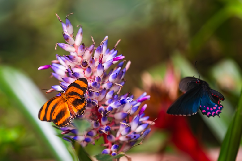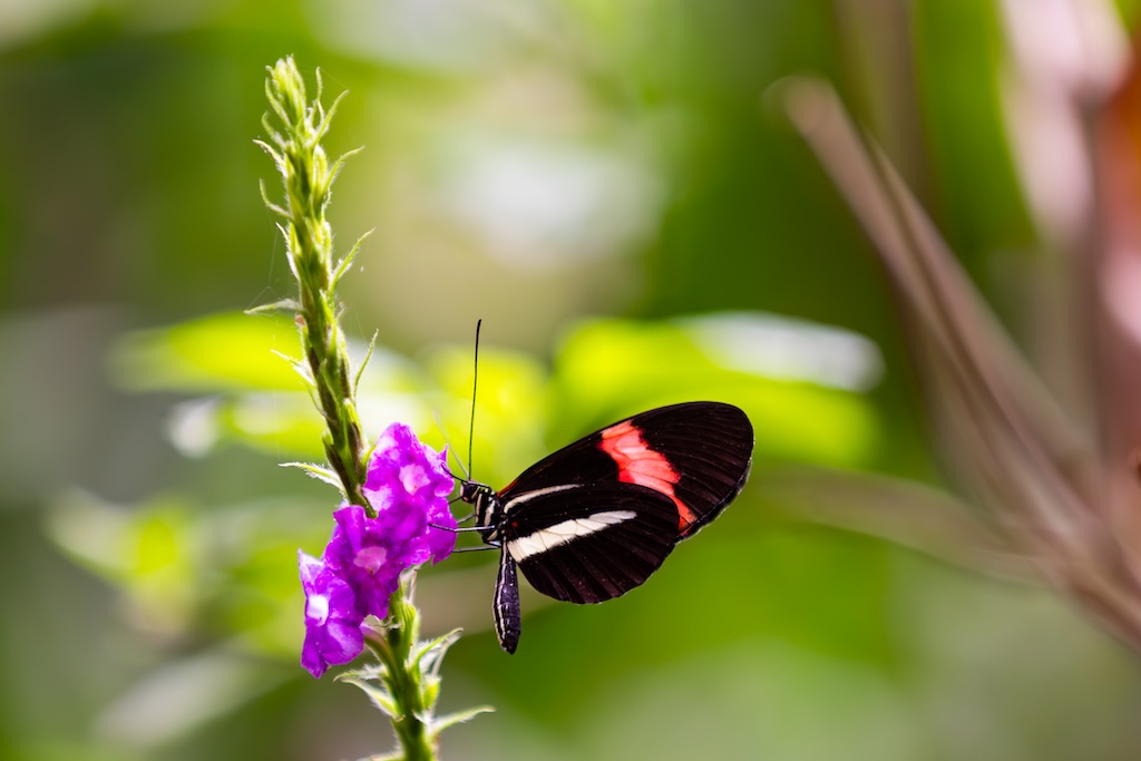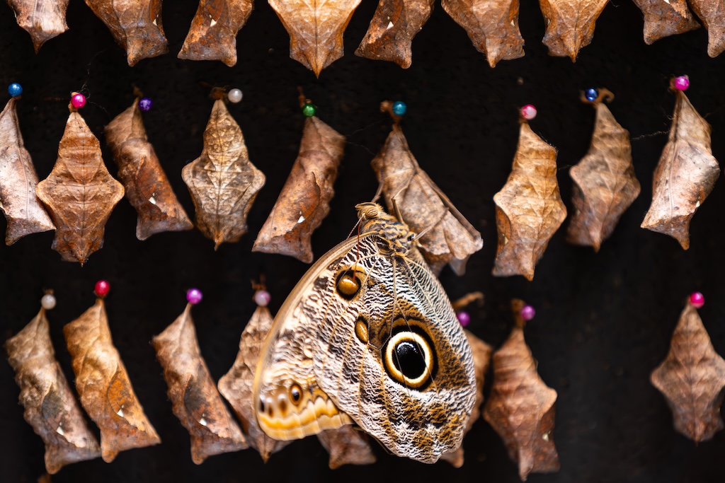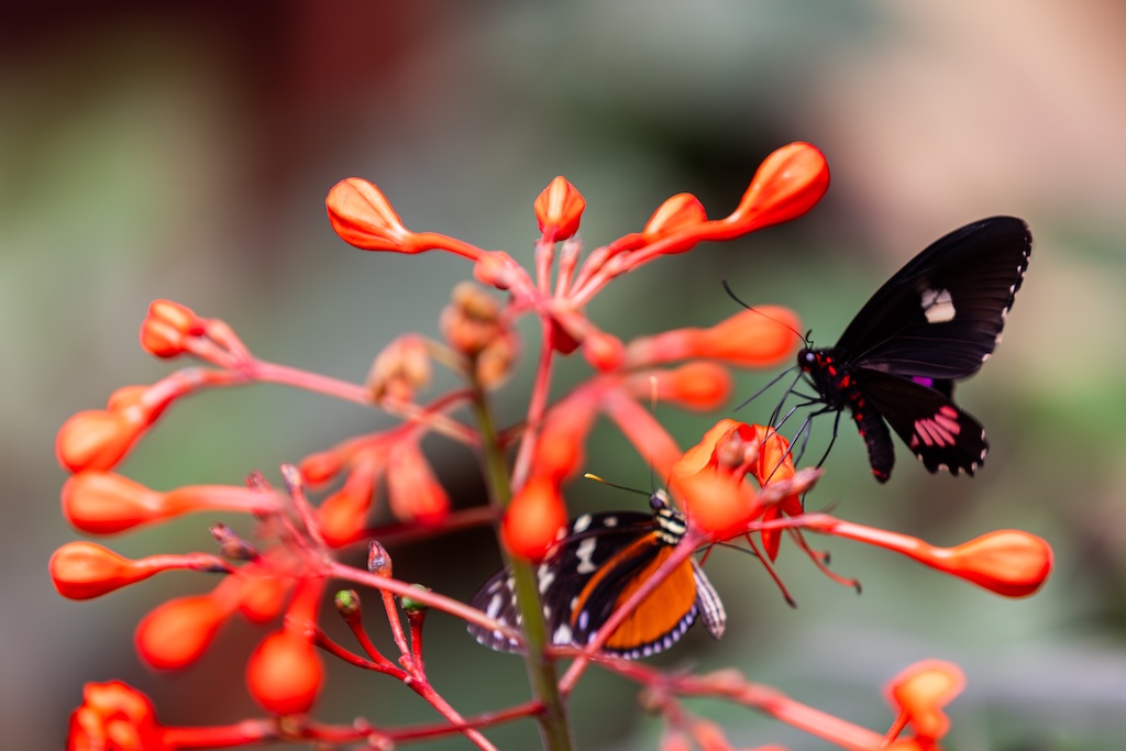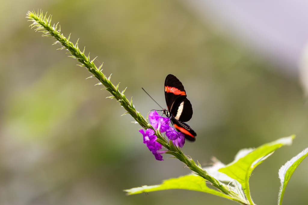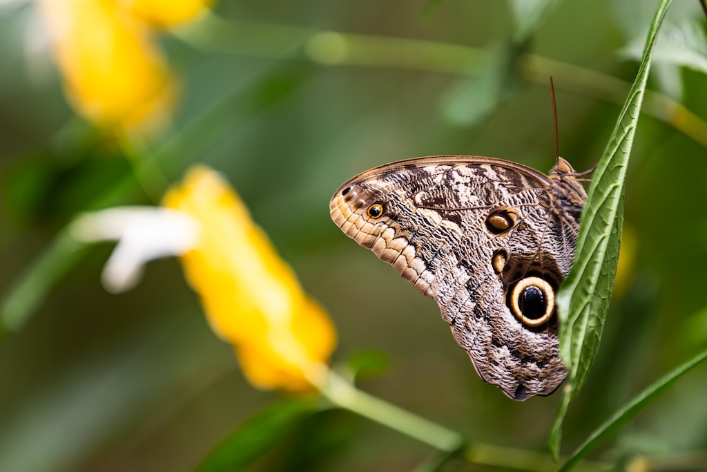 De gids zei dat de vlindertuin ook een echte aanrader was, dat vond iedereen erg leuk de vorige keer. Nou… het was gewoon een dichte koepel, zoals in de dierentuin waar vlinders gekweekt of gekocht worden. Erg teleurstellend, ik dacht aan een grote bloementuin met veel vlinders… Ik heb toch nog wat foto’s van de vlinders gemaakt, want ik had voor de wandeling over de bruggen en de vlindertuin 80 euro betaald, en gierig als een echte Hollander wilde ik dan ook wel even gebruik maken van de gelegenheid. Maar ik was niet heel blij vandaag. Kan gebeuren, maar voortaan vraag ik toch weer door naar de details in plaats van gewoon boeken wat de gids zegt.