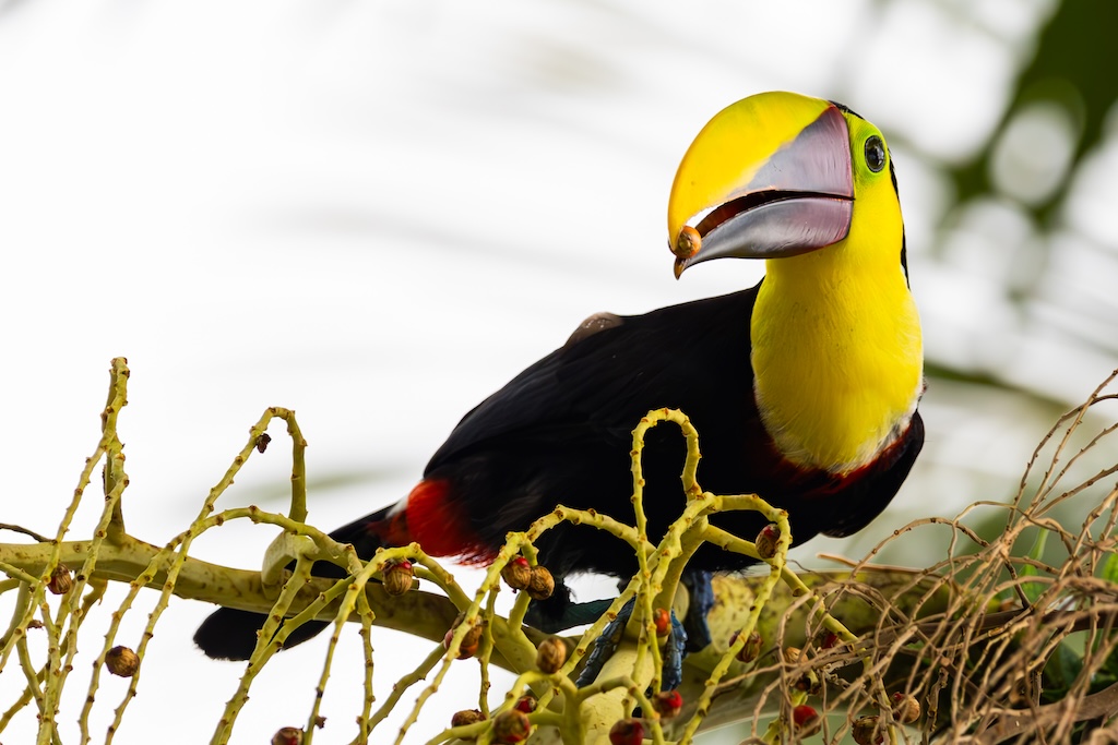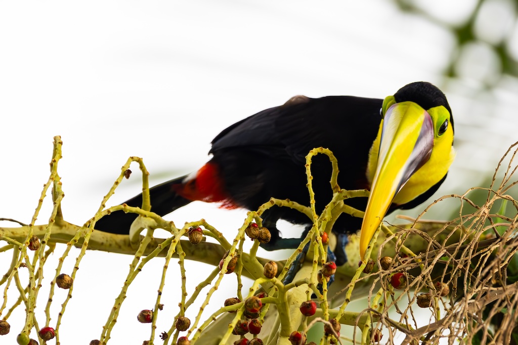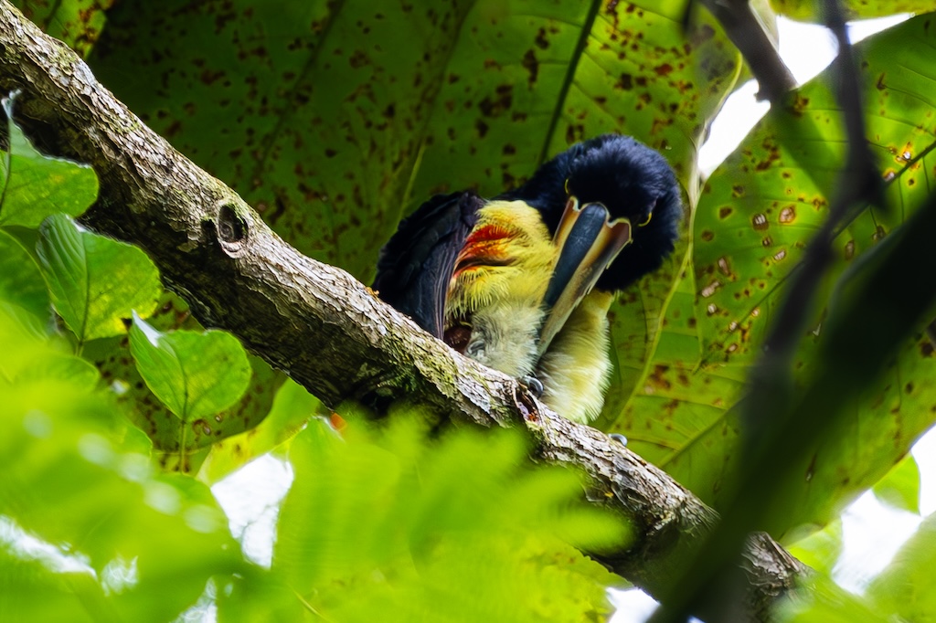 Toch wilde ik deze nieuwe dag niet aan mij voorbij laten gaan. Daarom ging ik naar Ecocentro Danaus. Hier had ik over gelezen. Een kleinschalig privépark/bos waar veel vogels langskomen voor een lekker fruithapje. Er was ook een toilet aanwezig, dus dan kon ik pendelen tussen het foto’s maken en zelf (k)ontladen.