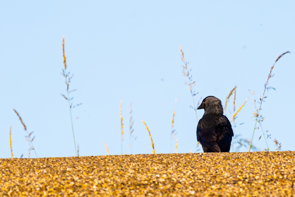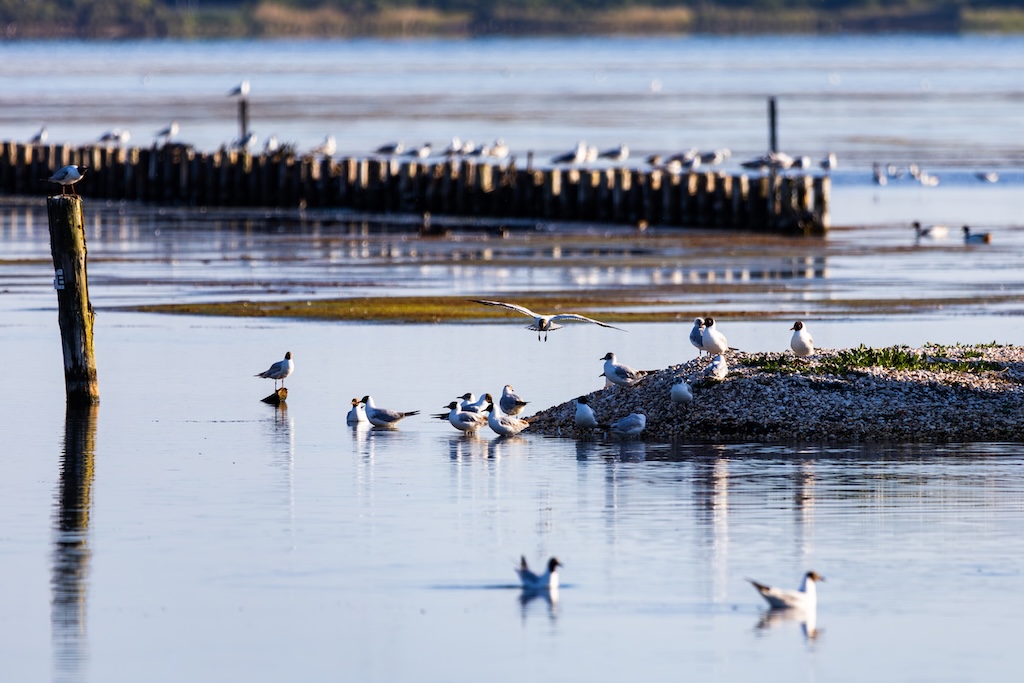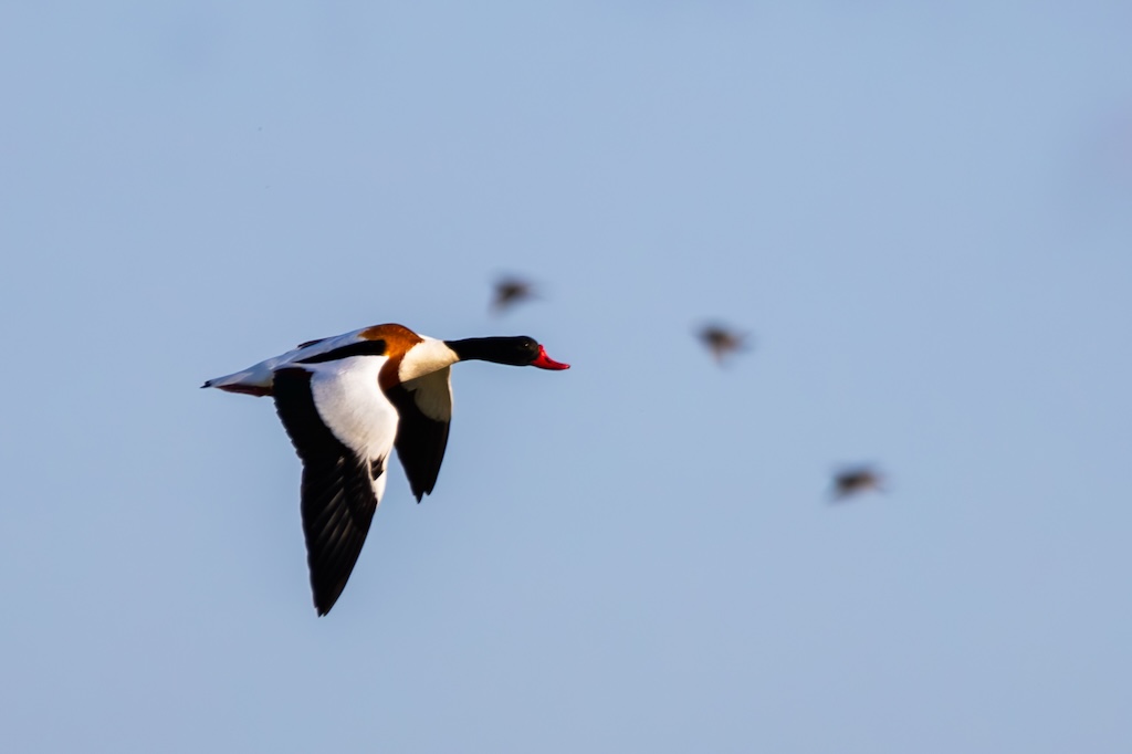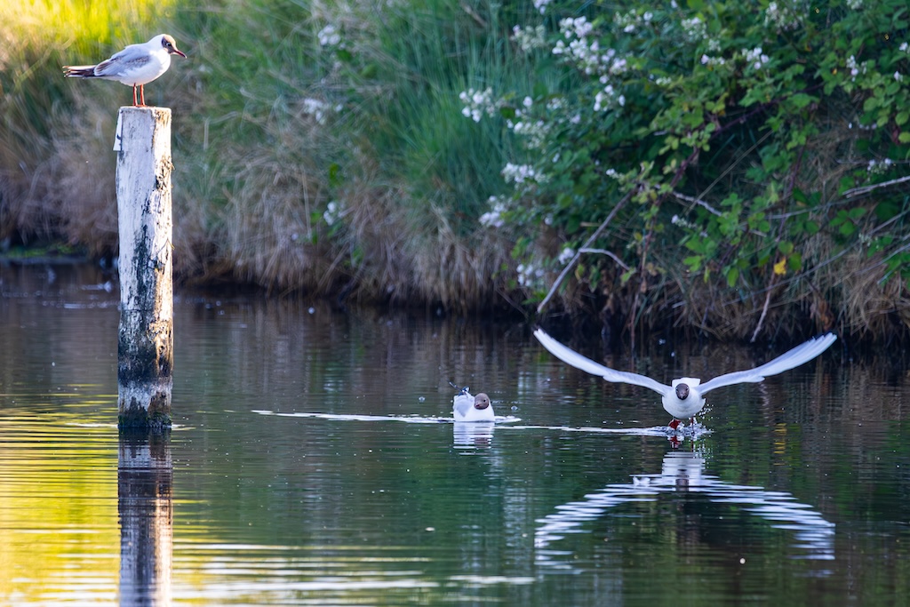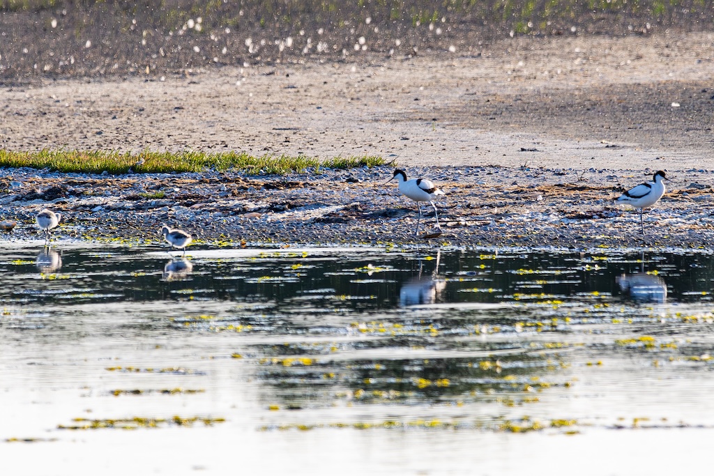 Even later vloog er een grote groep spreeuwen over, en ook een enkele bergeend liet zich nog zien. Aan de overkant, helaas veel te ver weg voor een goede foto, liep een paartje kluten met twee jongen. Super schattig — maar helaas, te ver voor goede foto’s.