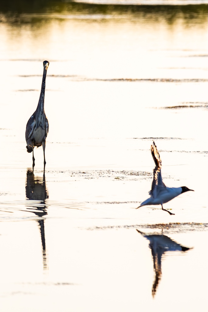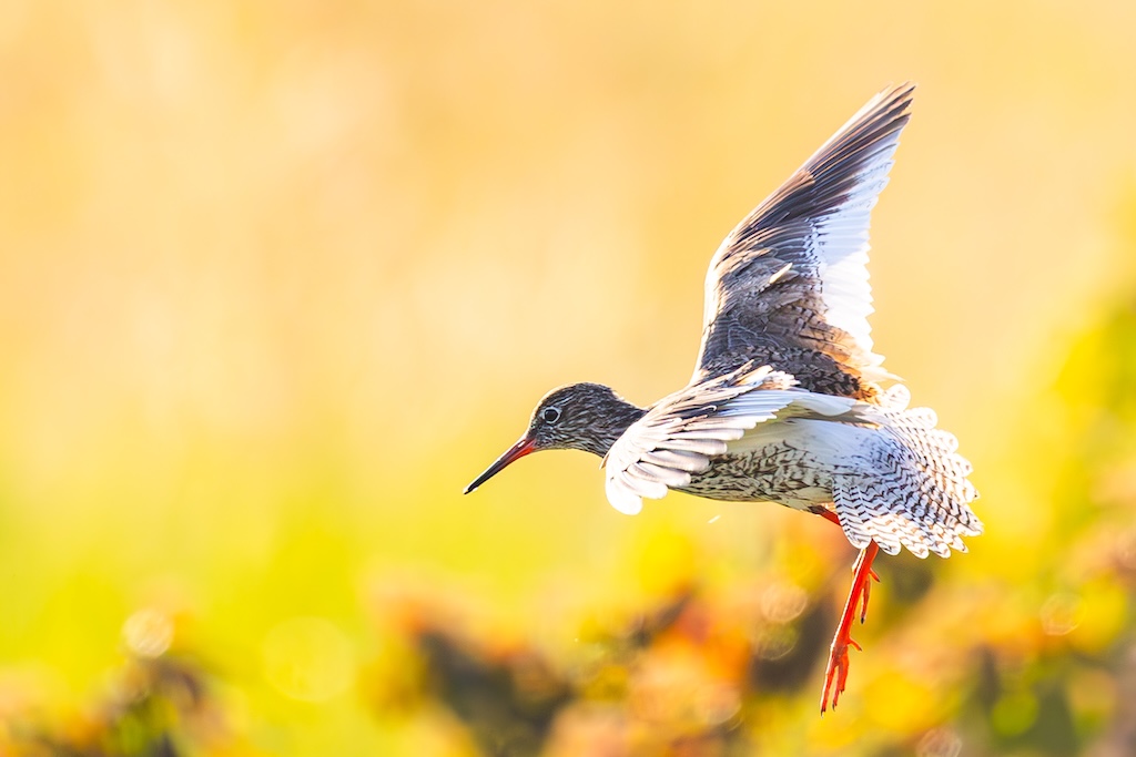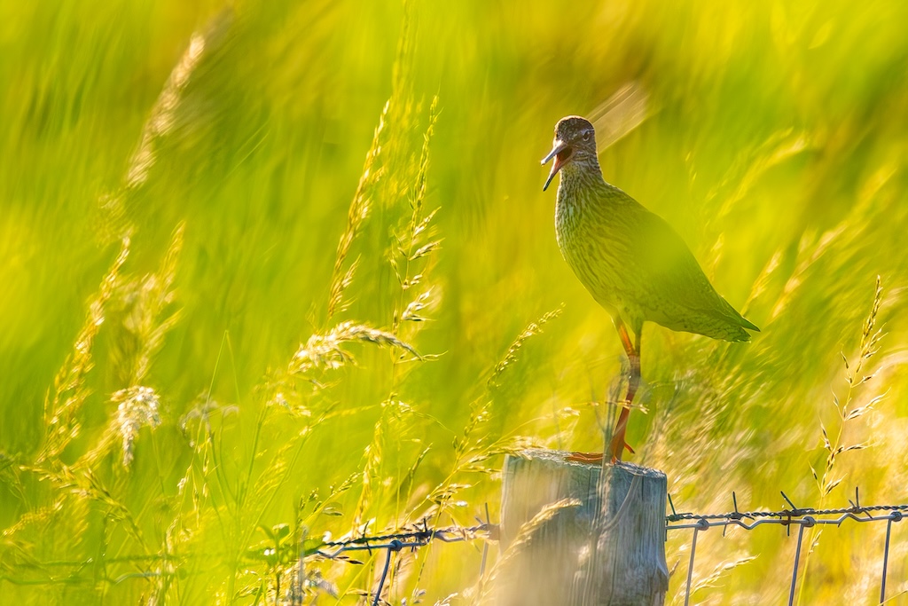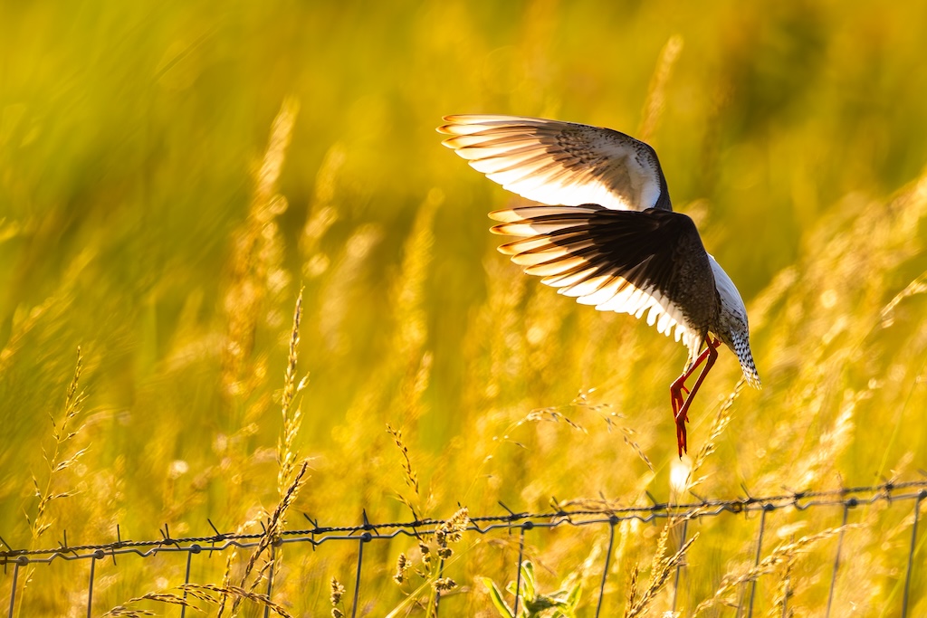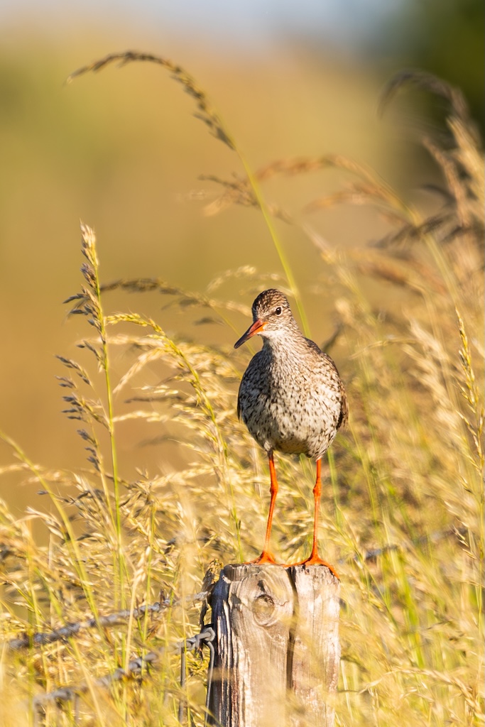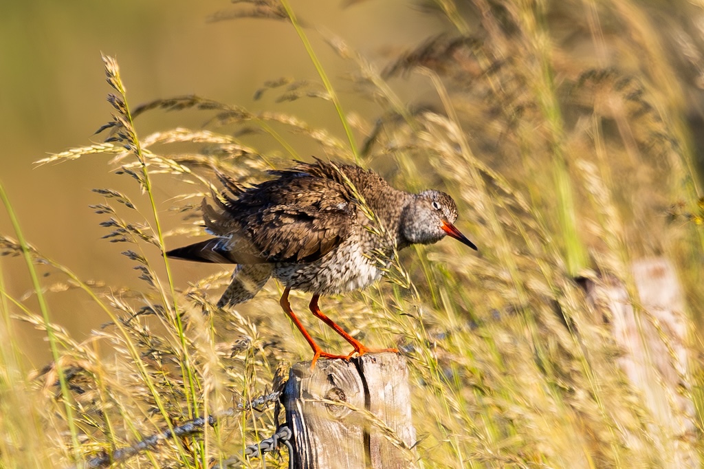 Iets verderop werd ik bijna geraakt door een laag overvliegend paartje tureluurs. Wat een energieke vogels zijn dat toch — altijd druk, altijd roepend. Ik vind ze geweldig. En ik heb er, al zeg ik het zelf, een paar prachtige foto’s van kunnen maken met de ondergaande zon.