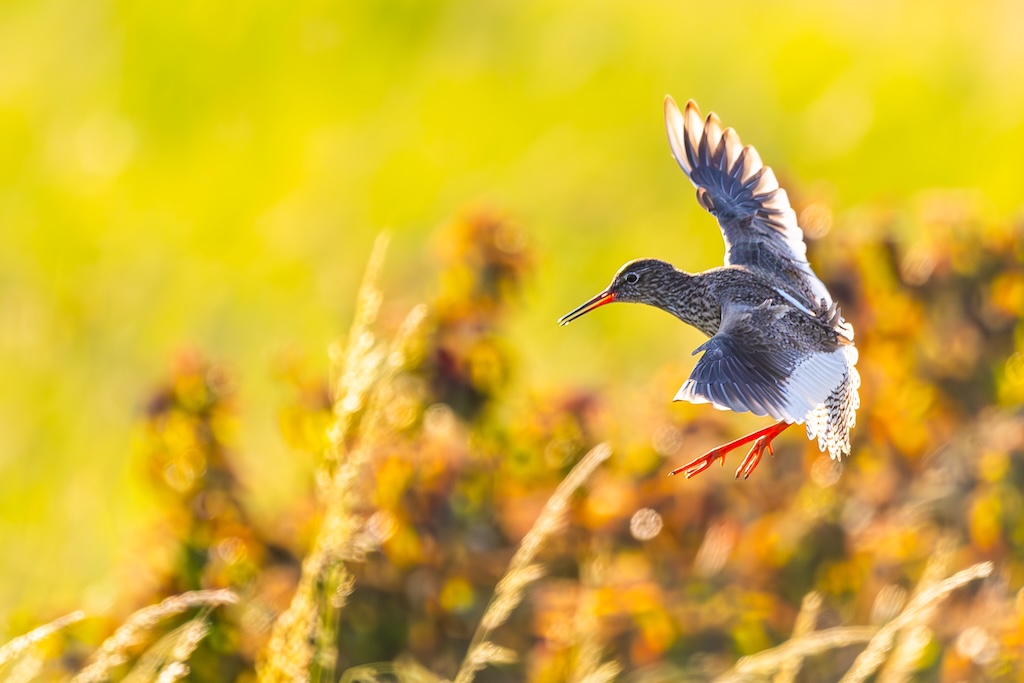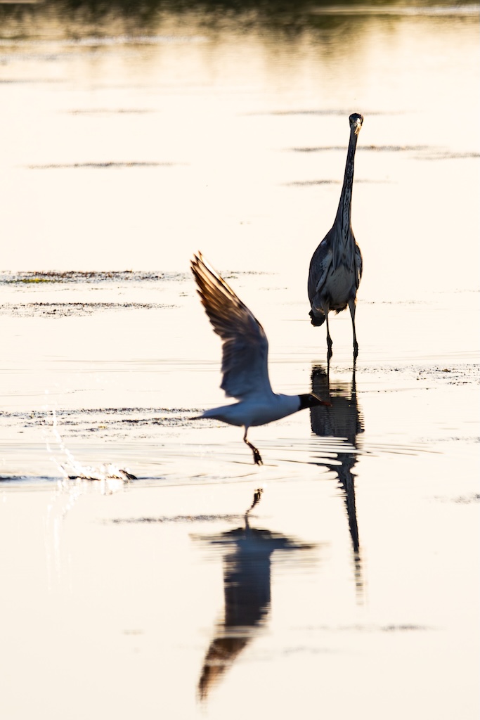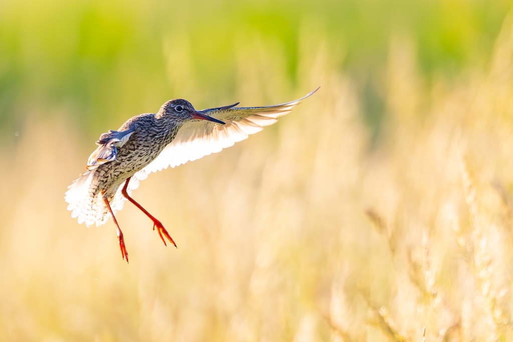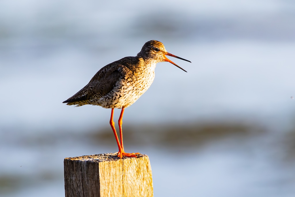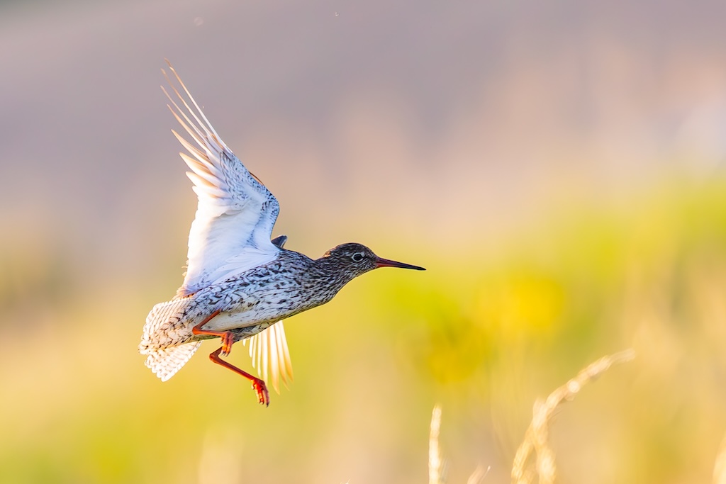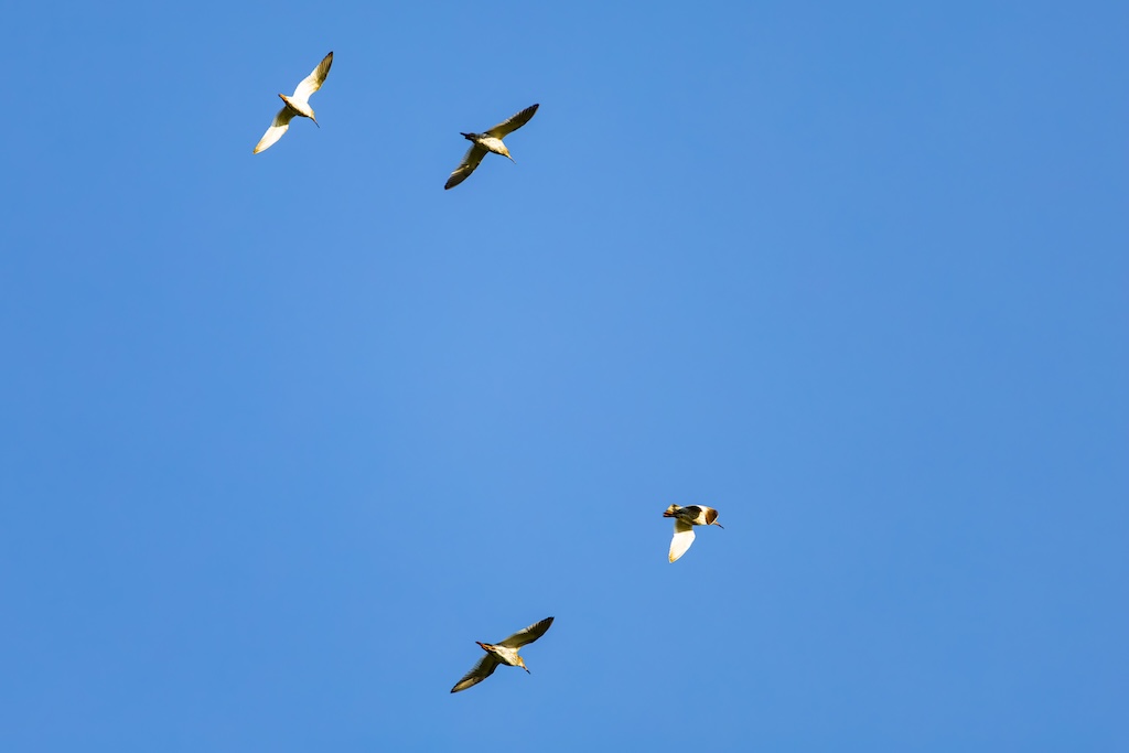 Iets verderop werd ik bijna geraakt door een laag overvliegend paartje tureluurs. Wat een energieke vogels zijn dat toch — altijd druk, altijd roepend. Ik vind ze geweldig. En ik heb er, al zeg ik het zelf, een paar prachtige foto’s van kunnen maken met de ondergaande zon.