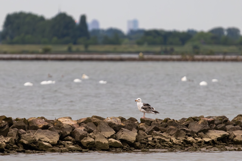 Als je Goeree-Overflakkee binnenrijdt via de Haringvlietbrug, dan rijd je over de N59. Langs deze weg liggen drie observatiehutten. Je bereikt ze via de kruising bij Den Bommel; rijd dan langs Hetty’s Verse Patat (een echte aanrader!) en je komt op de Vogelboulevard terecht. Deze hutten zijn niet speciaal gericht op fotografie, want de vogels en eenden zitten vaak te ver weg. Maar het is er altijd prachtig, en bij elk bezoek is er weer iets anders te zien. Je kunt hier heerlijk wegdromen met mooie uitzichten.