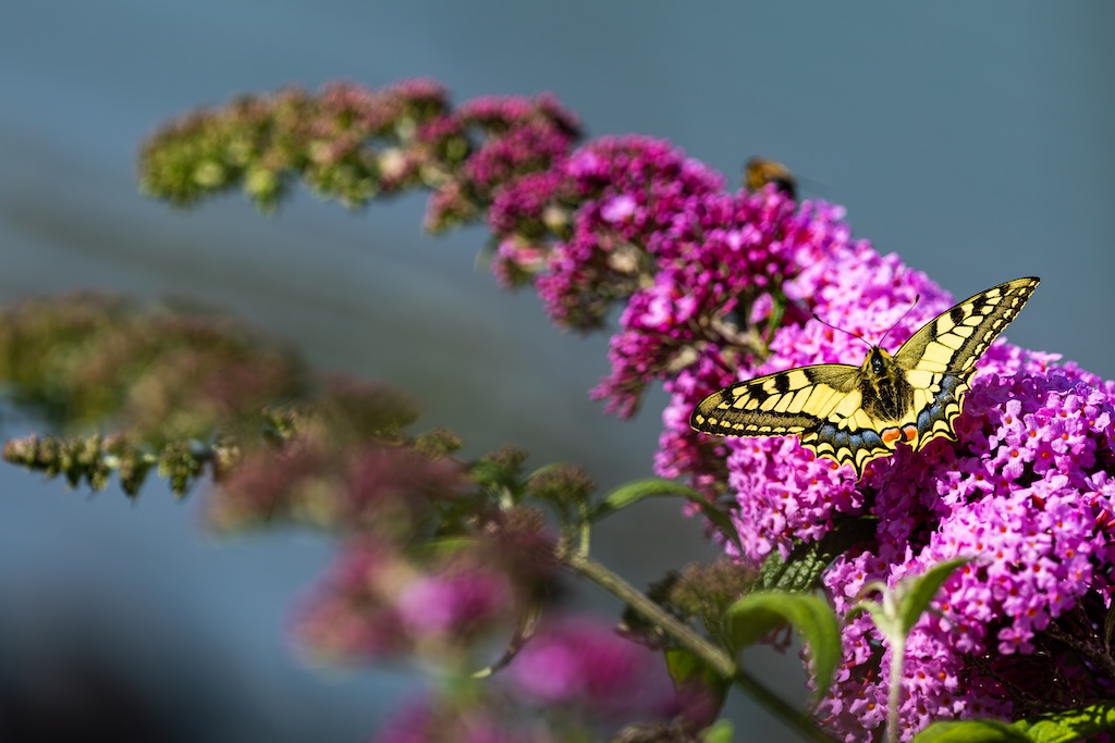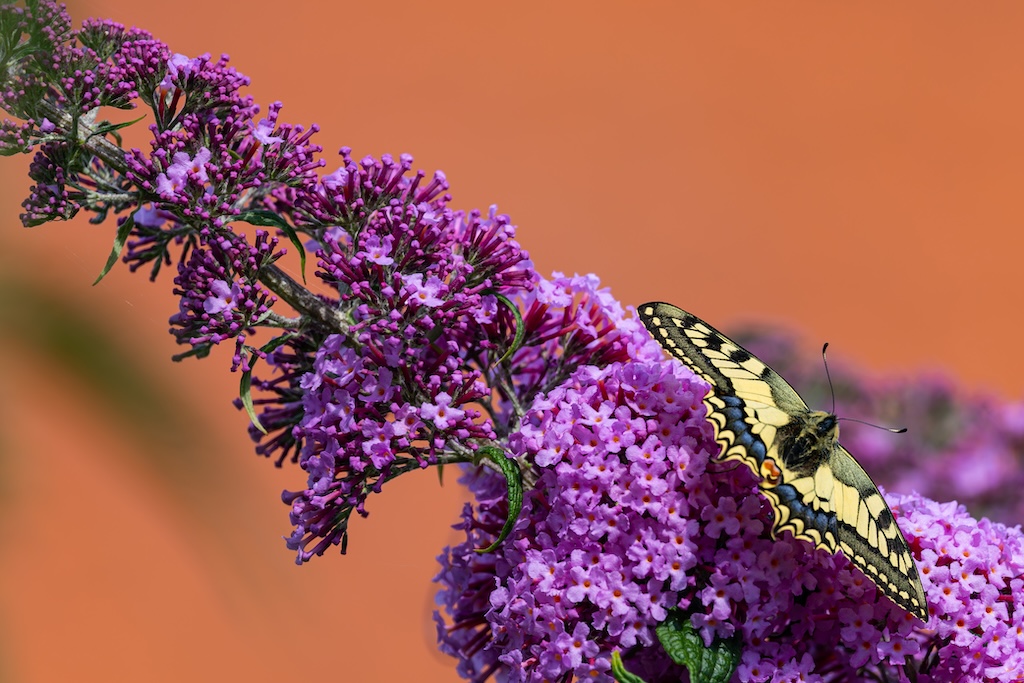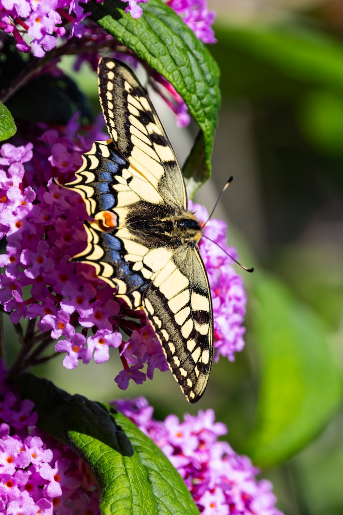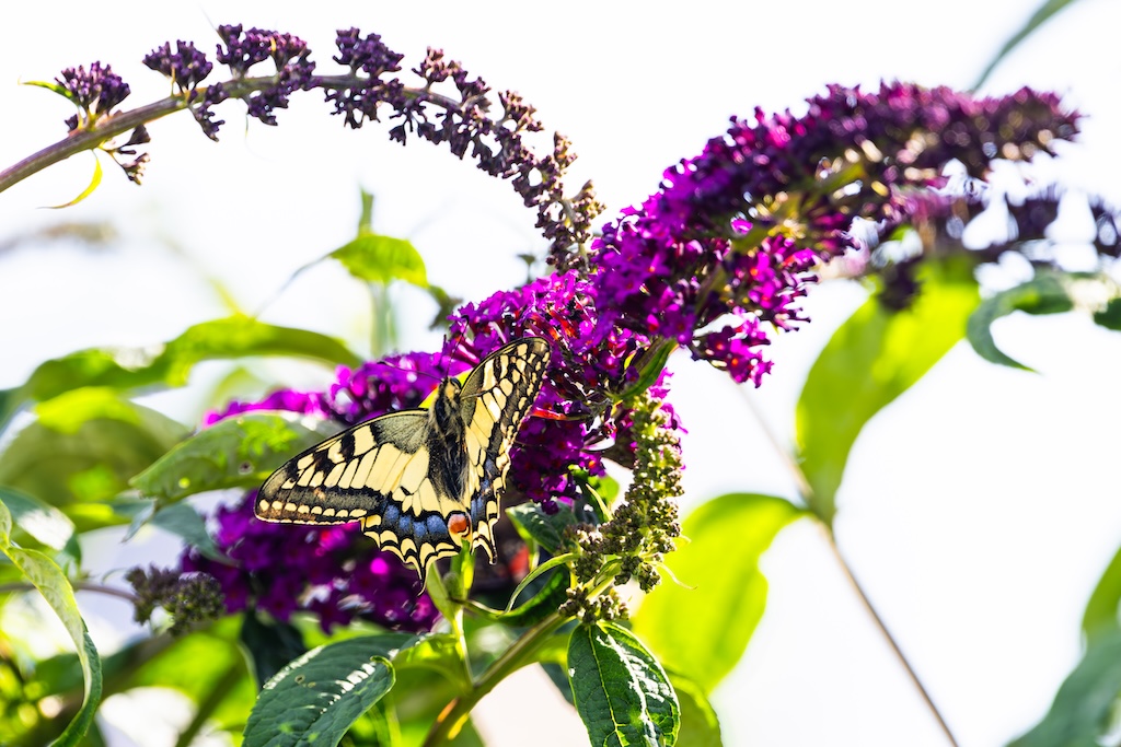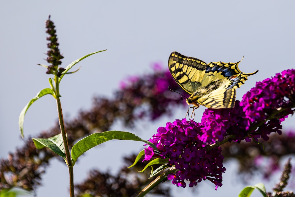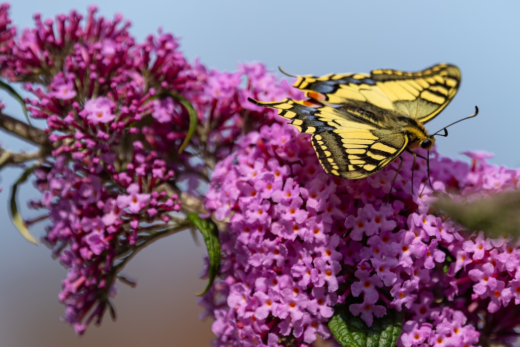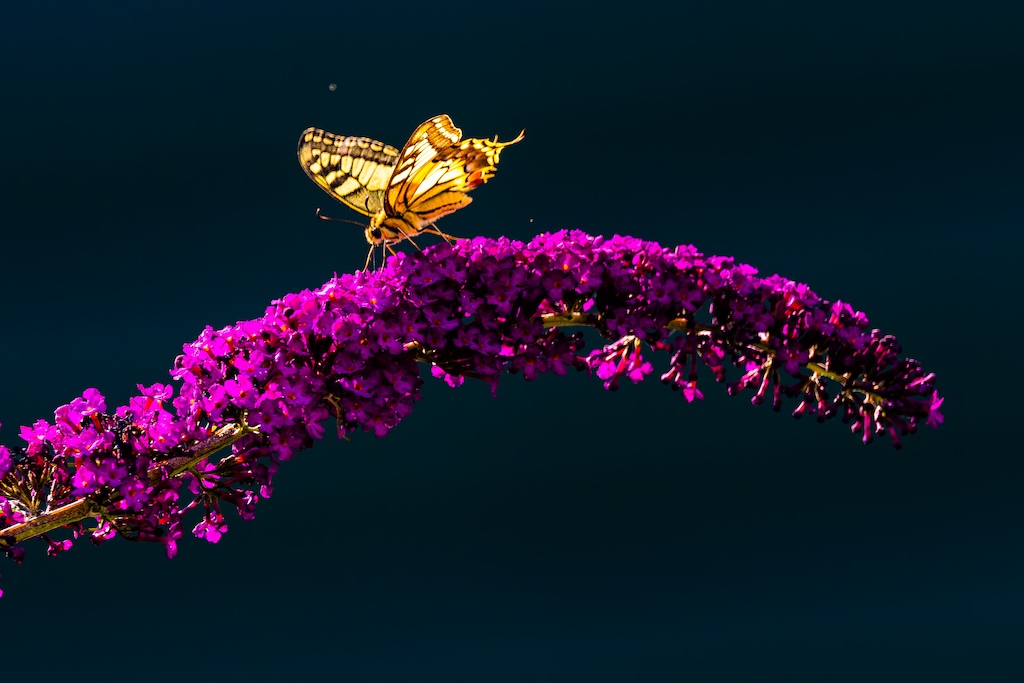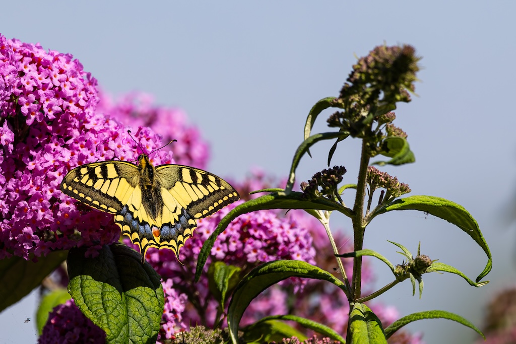 En hoe toevallig is het dat ik letterlijk vorige week tegen mijn ouders had verteld over de koninginnenpage? We hadden deze vlinder slechts één keer gezien toen we Schloss Drachenburg bezochten in Duitsland. Maar ik sprak toen de wens uit om deze vlinder ooit in mijn tuin te mogen verwelkomen. Op Goeree-Overflakkee, waar ik woon komt hij namelijk niet vaak voor. Dit jaar is de koninginnenpage nog maar negen keer op Waarneming.nl gemeld, vorig jaar in totaal 22 keer, in 2023 zes keer en in 2022 twaalf keer. Dus dat mag je op Goeree-Overflakkee gerust een zeldzame verschijning noemen — en dit exemplaar koos precies mijn tuintje uit! Wow!
