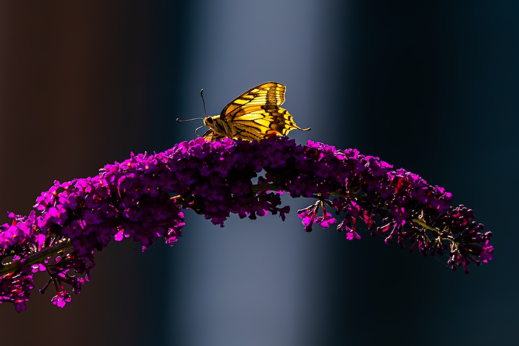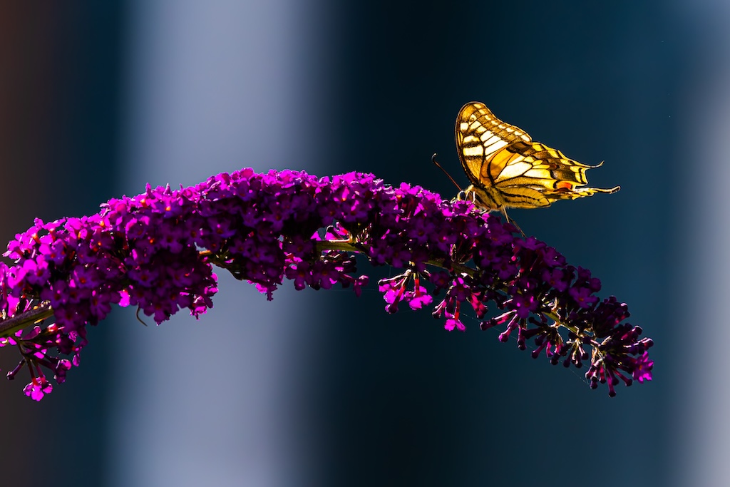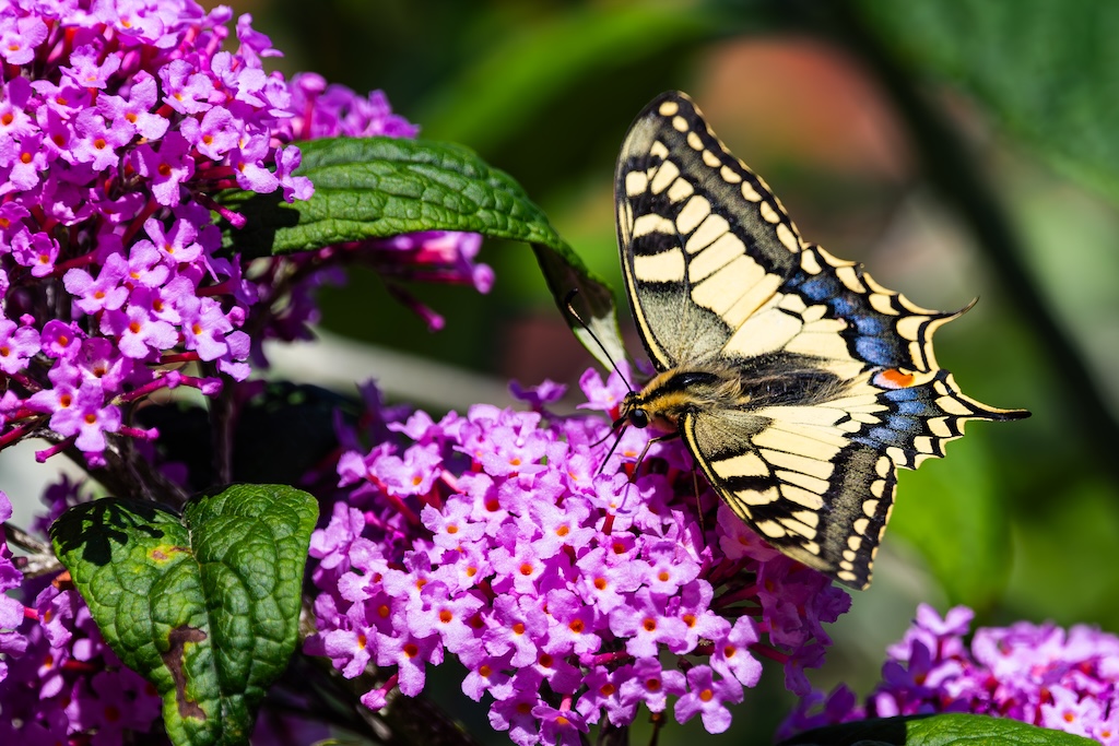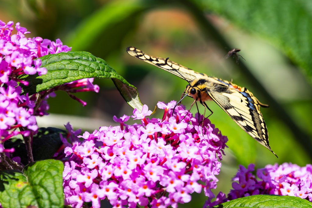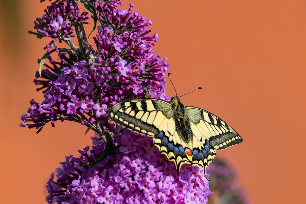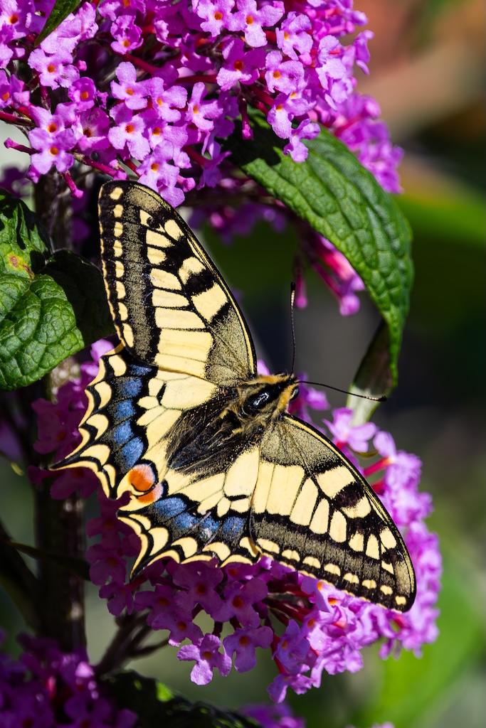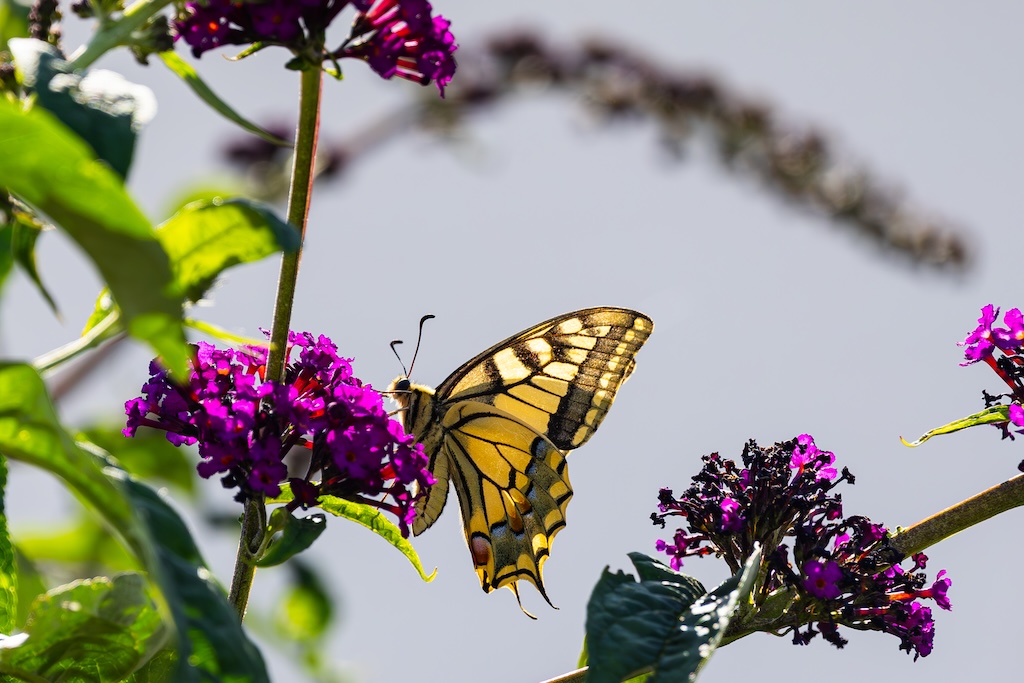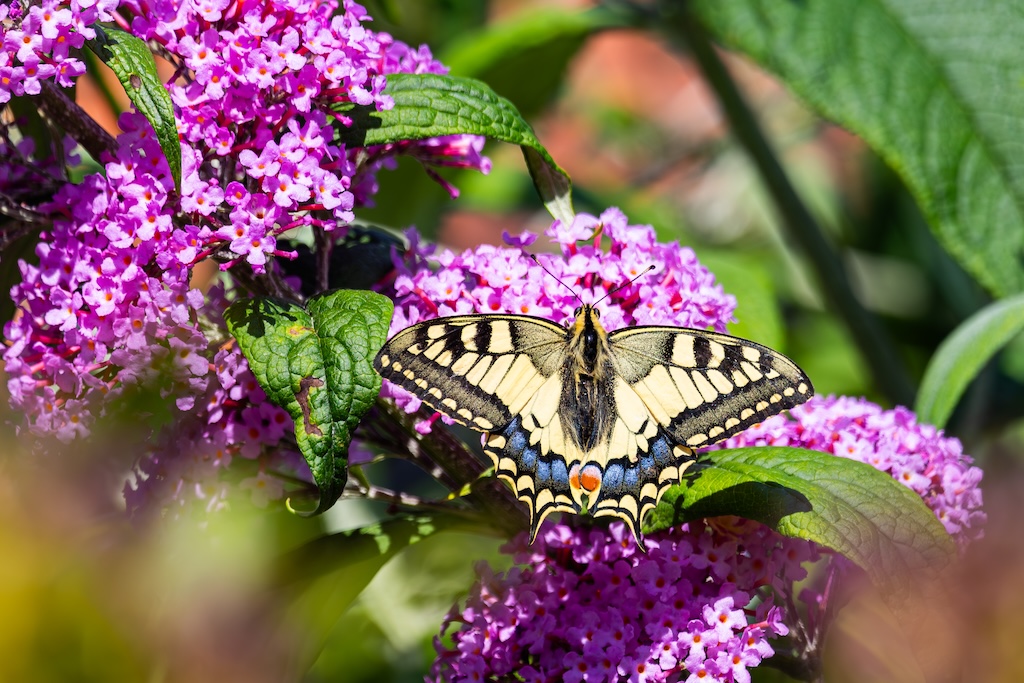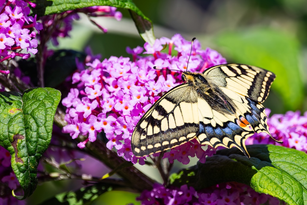 En hoe toevallig is het dat ik letterlijk vorige week tegen mijn ouders had verteld over de koninginnenpage? We hadden deze vlinder slechts één keer gezien toen we Schloss Drachenburg bezochten in Duitsland. Maar ik sprak toen de wens uit om deze vlinder ooit in mijn tuin te mogen verwelkomen. Op Goeree-Overflakkee, waar ik woon komt hij namelijk niet vaak voor. Dit jaar is de koninginnenpage nog maar negen keer op Waarneming.nl gemeld, vorig jaar in totaal 22 keer, in 2023 zes keer en in 2022 twaalf keer. Dus dat mag je op Goeree-Overflakkee gerust een zeldzame verschijning noemen — en dit exemplaar koos precies mijn tuintje uit! Wow!