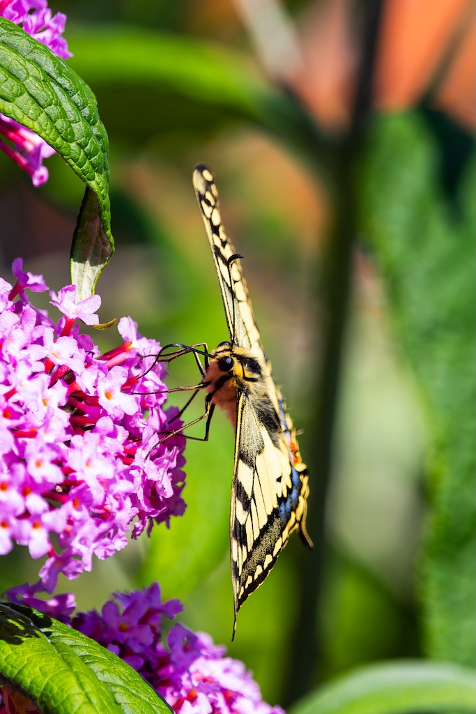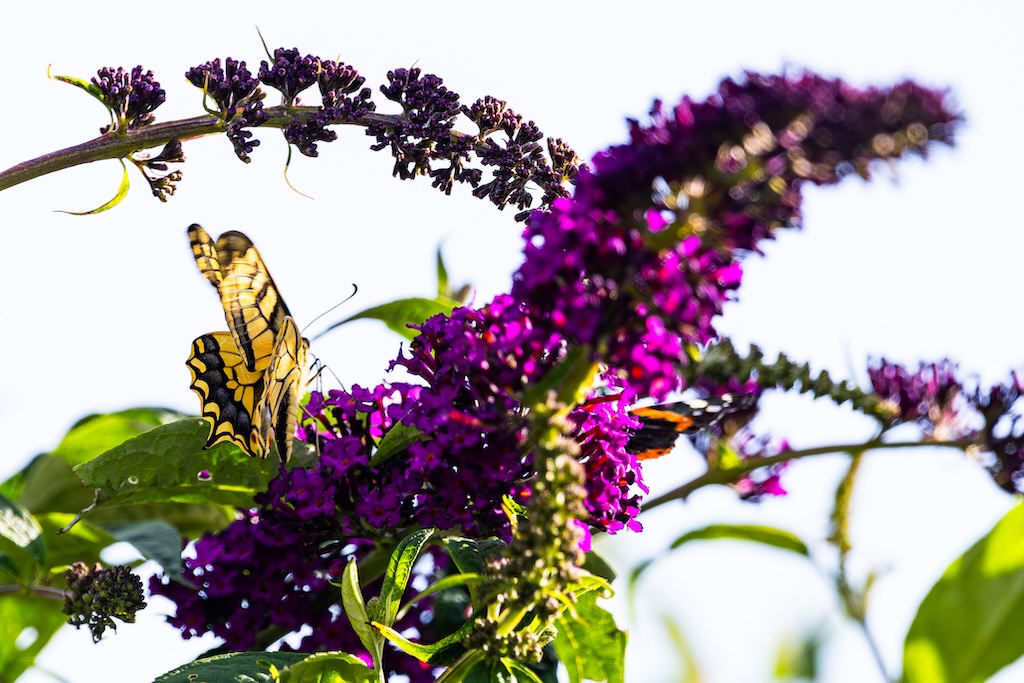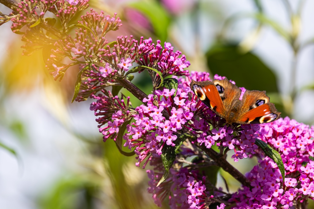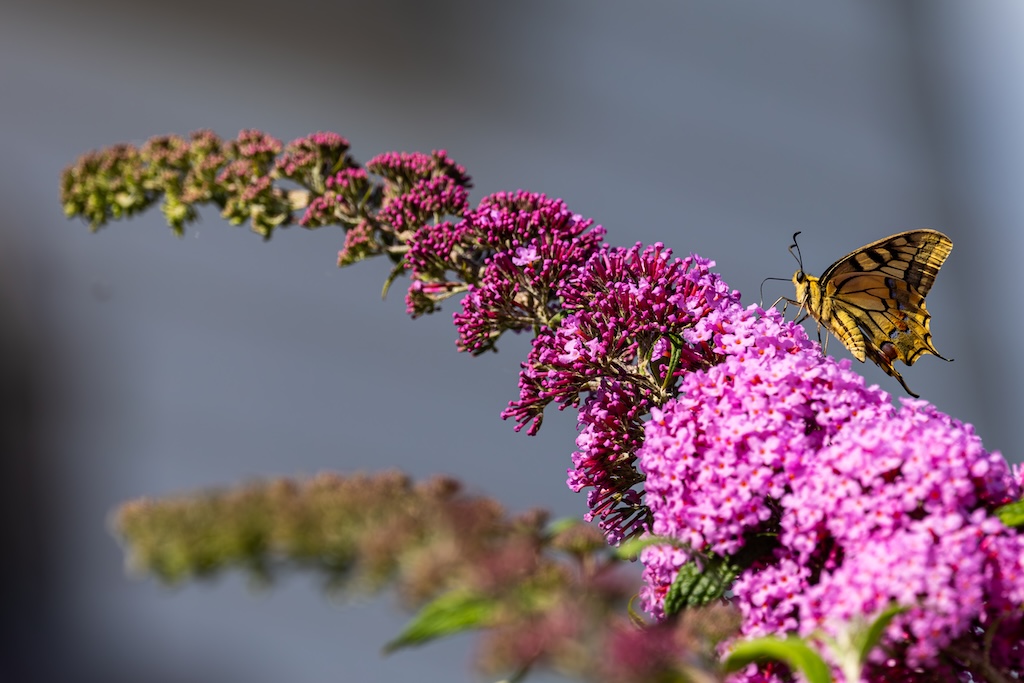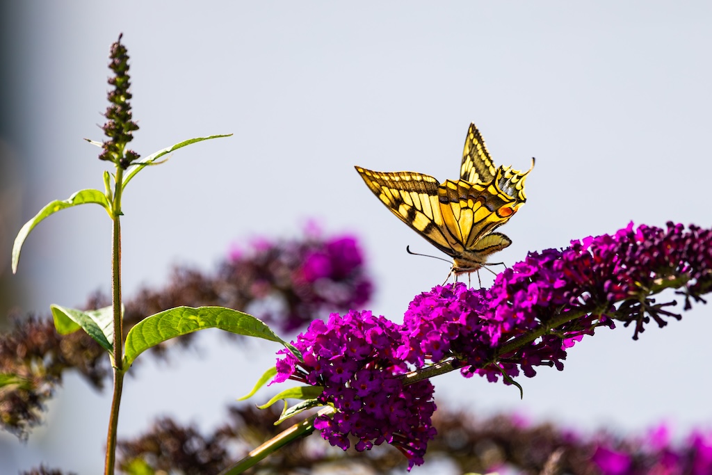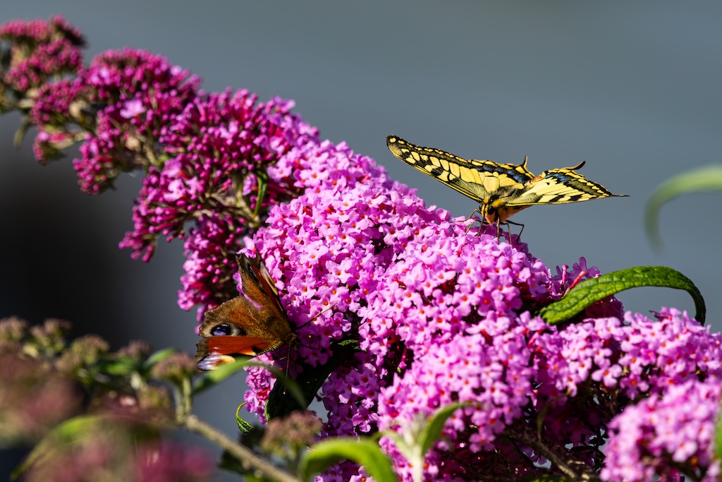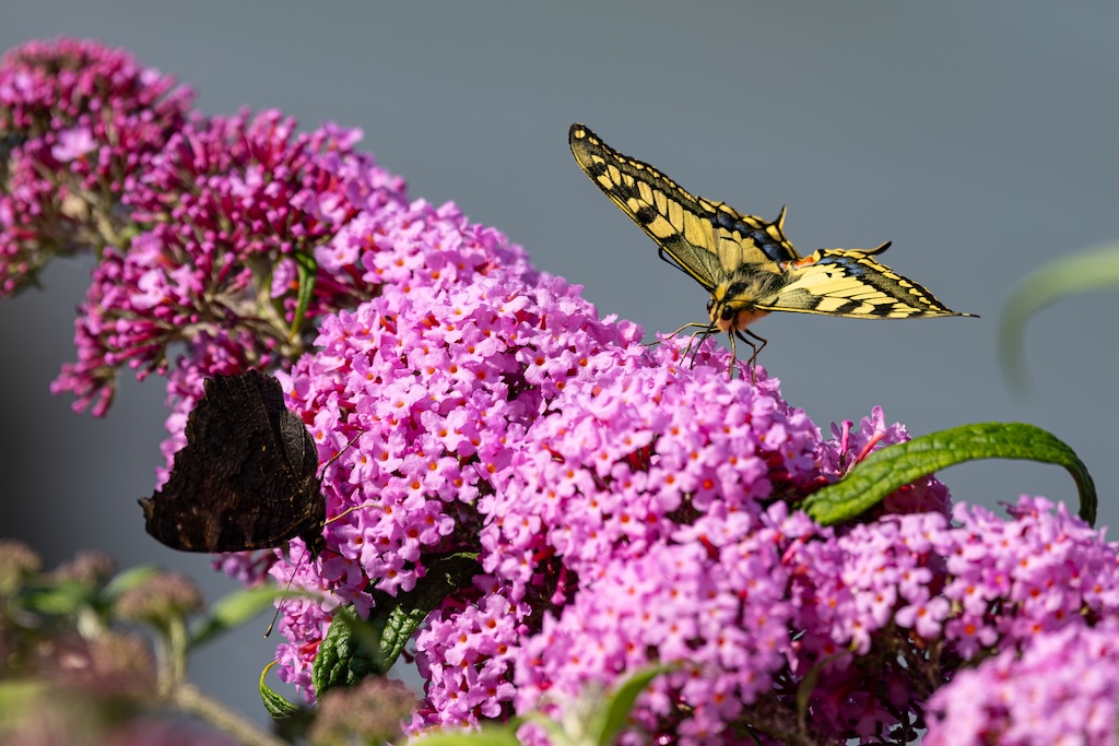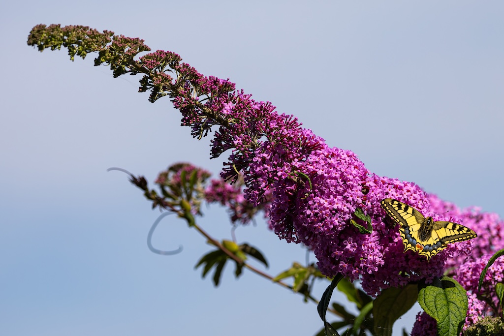Vanmiddag zat ik gezellig met mijn lieve vriendin Roos te bellen, tot ik in mijn ooghoek een koninginnenpage dacht te zien. Ik zei tegen haar: “Wacht even hoor…” Ik stond op, liep naar een van de Buddleja’s in mijn tuin en riep vol enthousiasme: “Koninginnenpage!” Wow! In mijn eigen tuin! Een droom kwam uit!