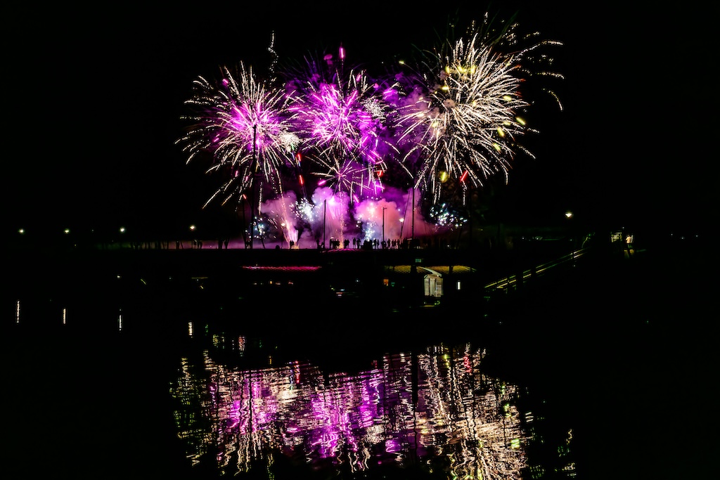 Toen de klok bijna middernacht sloeg, werd het toch een beetje spannend. Stond ik wel op de juiste locatie? Ik had namelijk geen idee van welke kant het vuurwerk zou komen. En de show duurt vaak maar zo’n tien minuten, dus ik had geen tijd om in het donker verschillende composities uit te proberen.